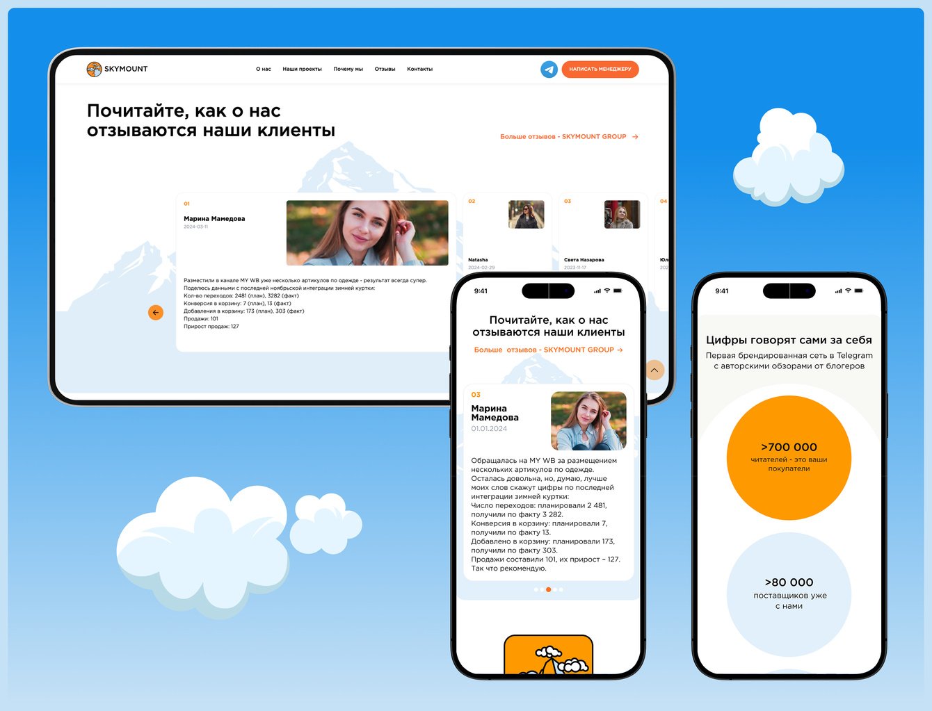 Лендинг-страница компании «Skymount» стала эффективным инструментом для привлечения клиентов и презентации услуг. Удобная система онлайн-заявок, подробная информация о преимуществах и отзывы повысили доверие клиентов. Сайт способствовал увеличению числа заявок и укреплению имиджа компании как надёжного партнёра в области продвижения товаров через социальные сети.