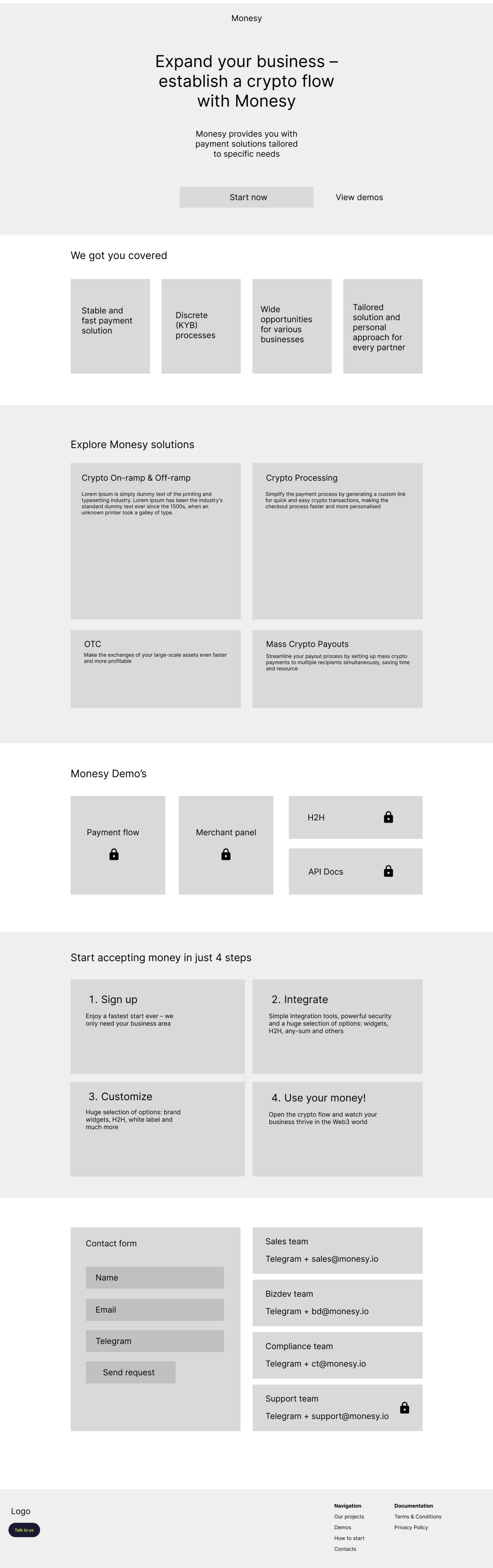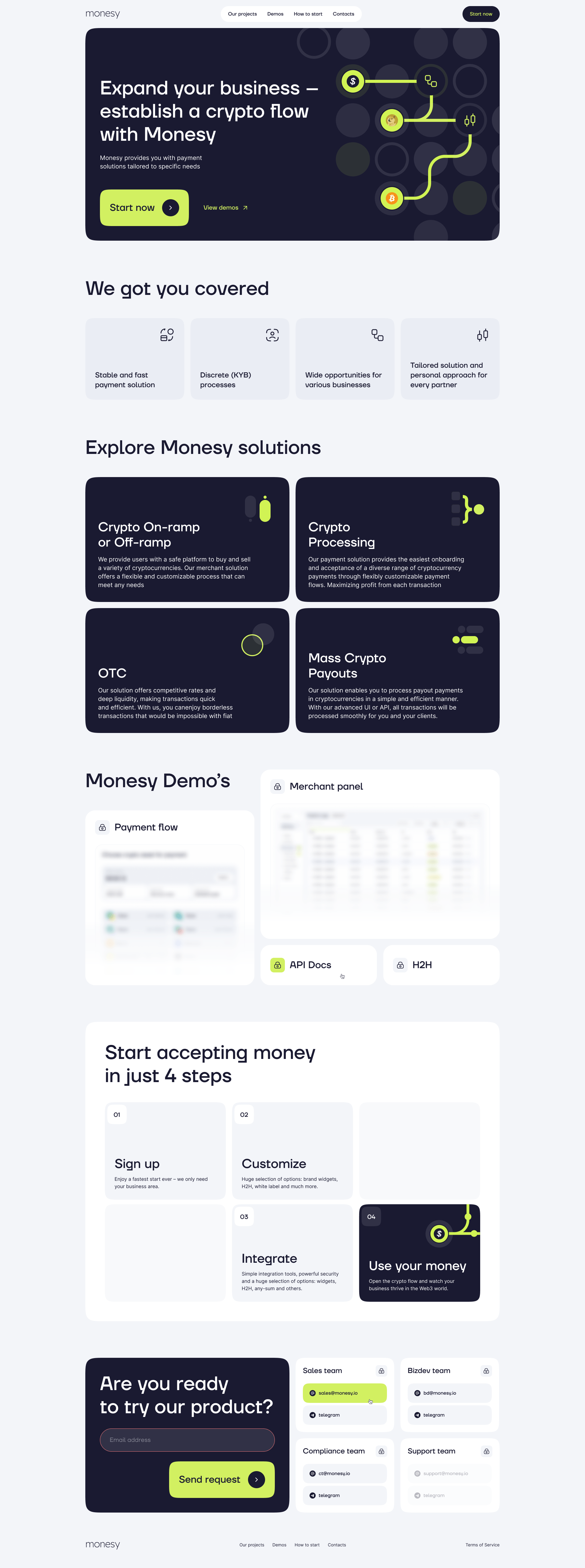 В рамках работы над большим проектом сервиса крипто процессинга, необходимо было разработать стартовую страницу продукта.