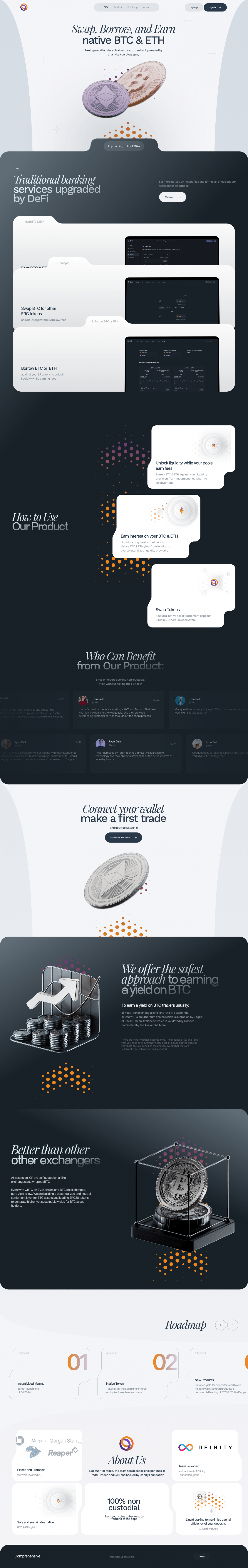 Сайт проекта сделан на Framer. Выглядит стильно и понятно рассказывает о продукте. Сделан в бенто-стиле, используется лаконичная графика на крипто-тематику. Анимации создают ощущении легкости и дополнительной проработки.