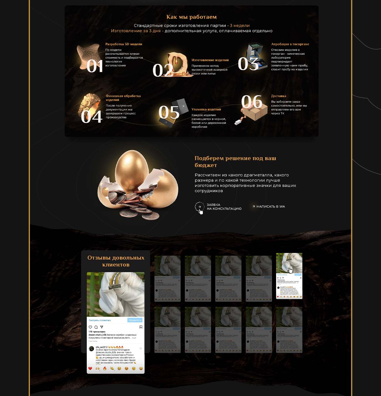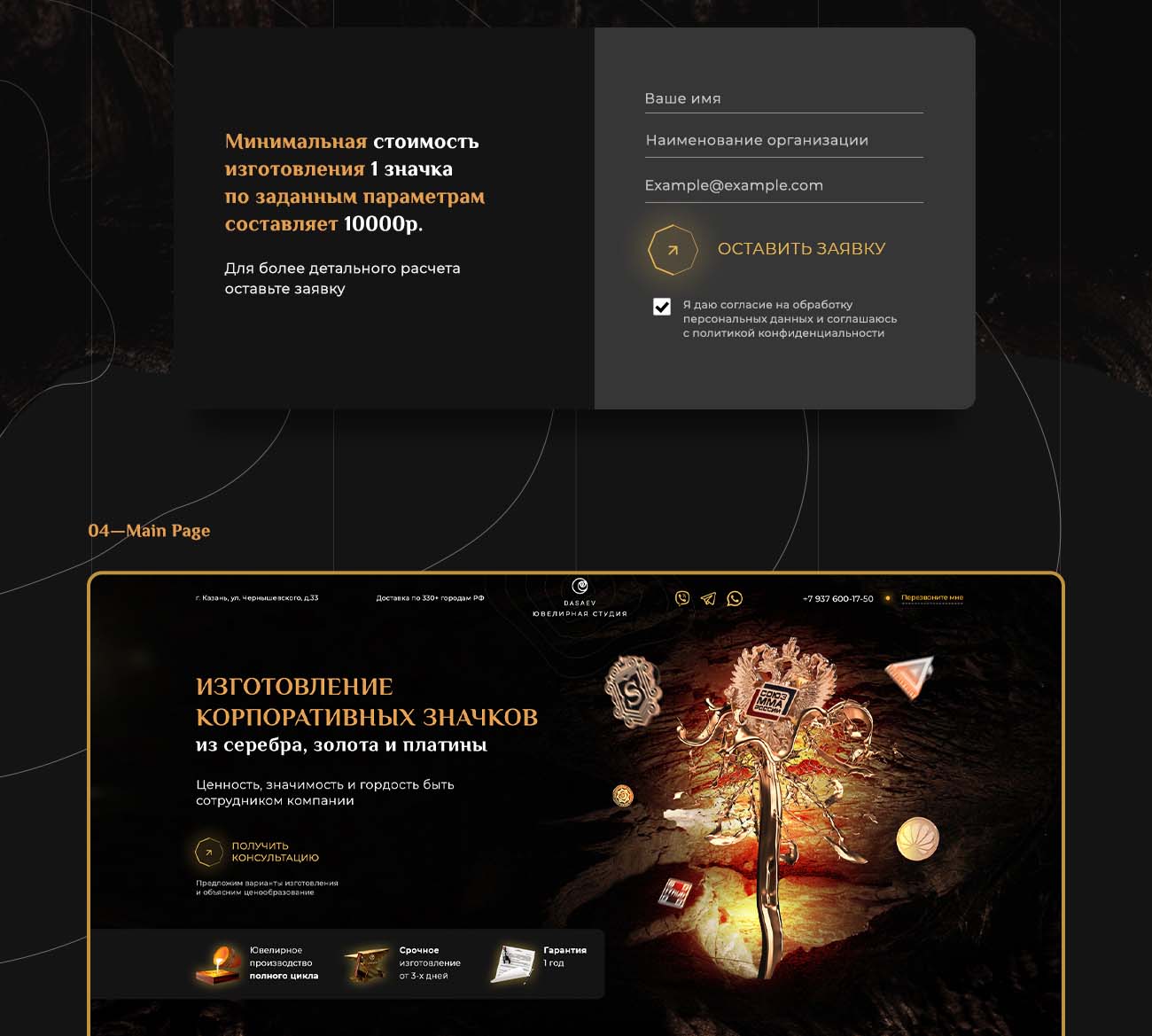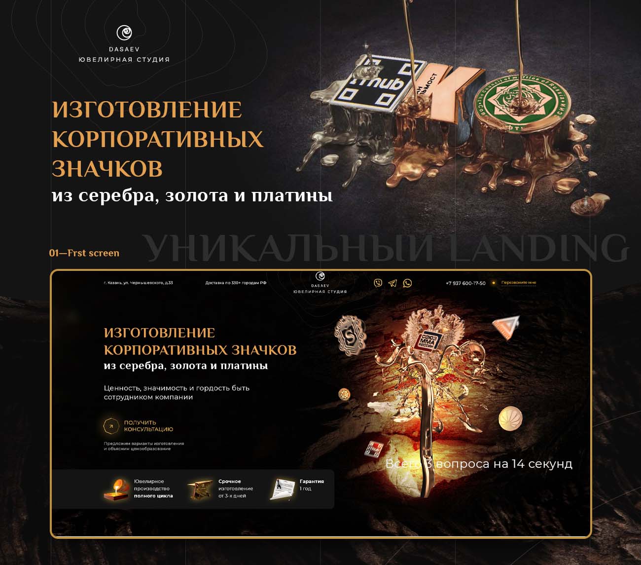 Задача: Разработать уникальный Landing Page для ювелирной студии