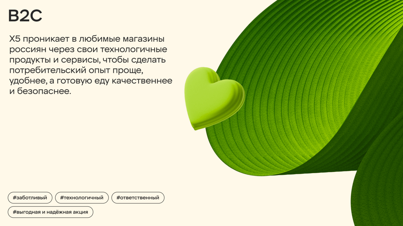 – B2C — 30 млн человек ежедневно пользовались сервисами X5, не зная, что за ними стоит единая компания;