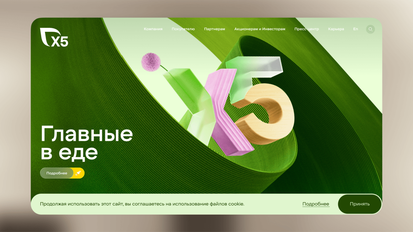 Одна из ключевых задач обновления нашей коммуникационной стратегии заключалась в том, чтобы стать ближе для миллионов покупателей, в жизни которых мы присутствуем каждый день. Это отразилось и на нашем визуальном стиле – он стал понятнее, отражает нашу технологичность и устойчивое развитие. Х5 постоянно движется вперед, ведь мы – главные в еде. Мы развиваем клиентский опыт, повышаем качество продуктов, делаем наши магазины удобнее и технологичнее. Мы строим бренд, которому доверяют и который выбирают, потому что за ним стоят забота и ответственность.