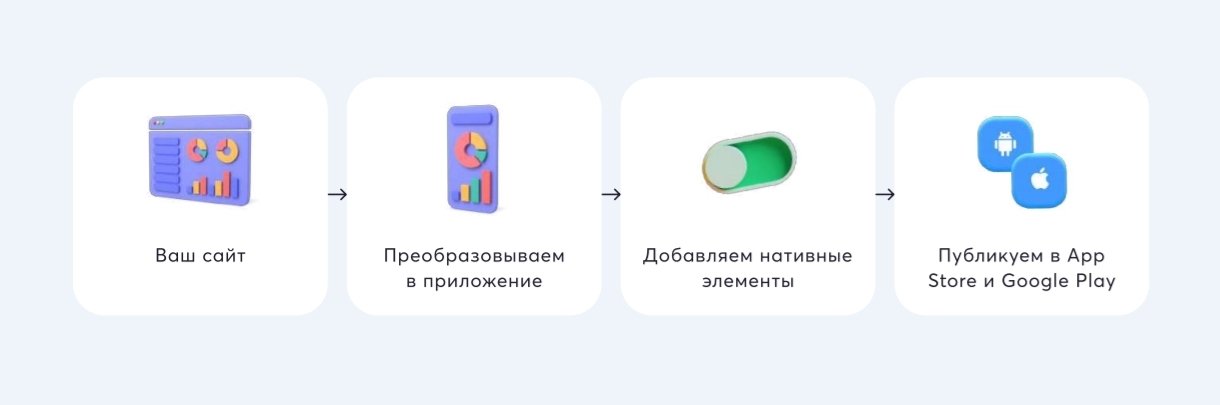 Было разработано мобильное приложение на основе продающего сайта с использованием технологии PWA и webview. Клиент получил мобильное приложение с работающим сайтом внутри. Мы взяли мобильную версию сайта и конвертировали ее в мобильное приложение.