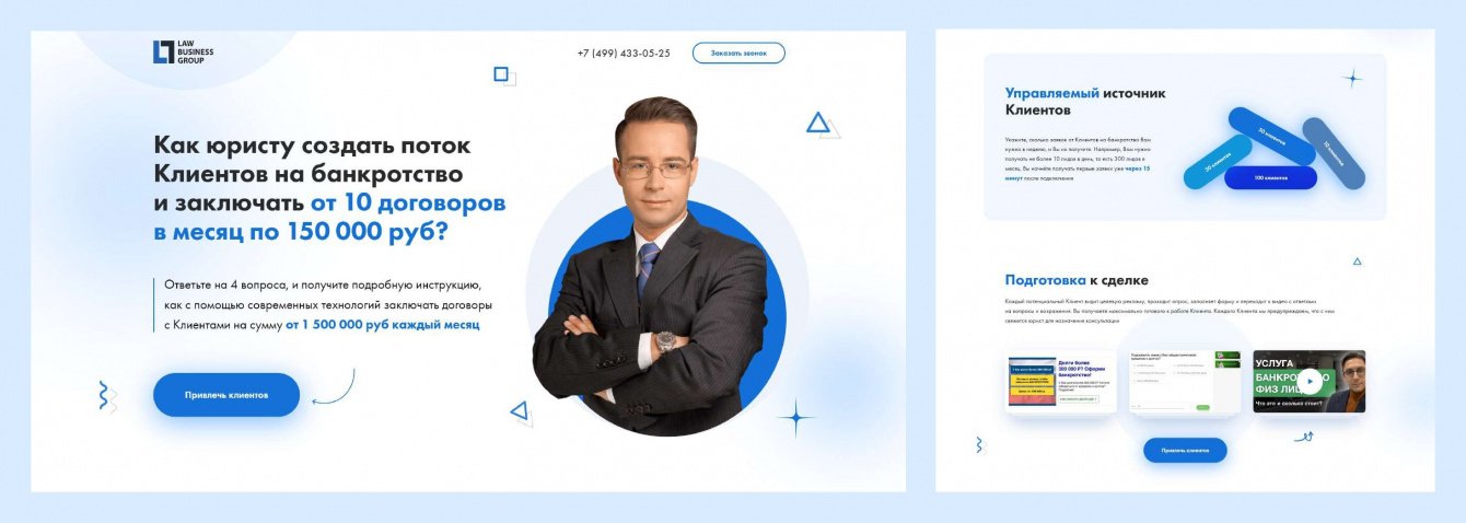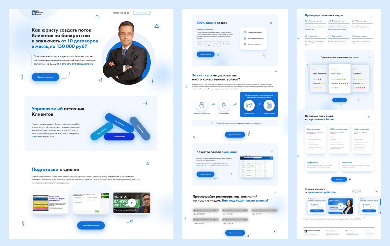 Этот сайт стал, можно сказать переломным, в нашей практике. Перед нами поставили высокую планку и мы ее взяли. Гармонично соединили две кардинально разные услуги для разных целевых аудиторий (практикующие юристы, компании по банкротству и юристы смежных направлений, не имеющие собственной практики).