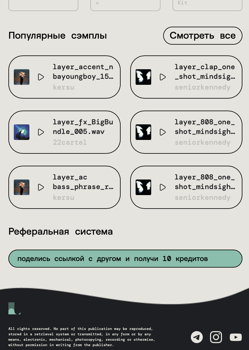 В рамках решения разливанно Telegram Mini App приложение с каталогом битов различных авторов и следующими разделами