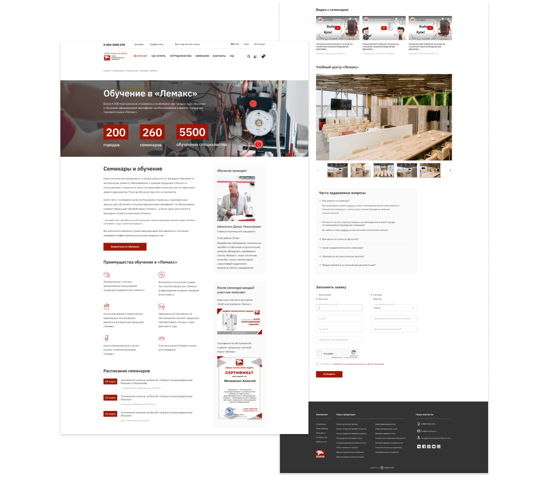 Для важного раздела Семинары и обучение сайта lemax-kotel.ru мы сделали отдельную посадочную страницу (landing-page).