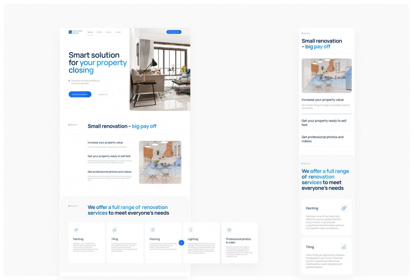 Разработать дизайн посадочной страницы, с помощью которого пользователи смогут быстро понять всю финансовую привлекательность данного сервиса, а также наглядно увидеть результаты до и после реновации жилья от компании Evolution Group. Данный проект был реализован на CMS Tilda и попал в рейтинг лучших проектов Made on Tilda.