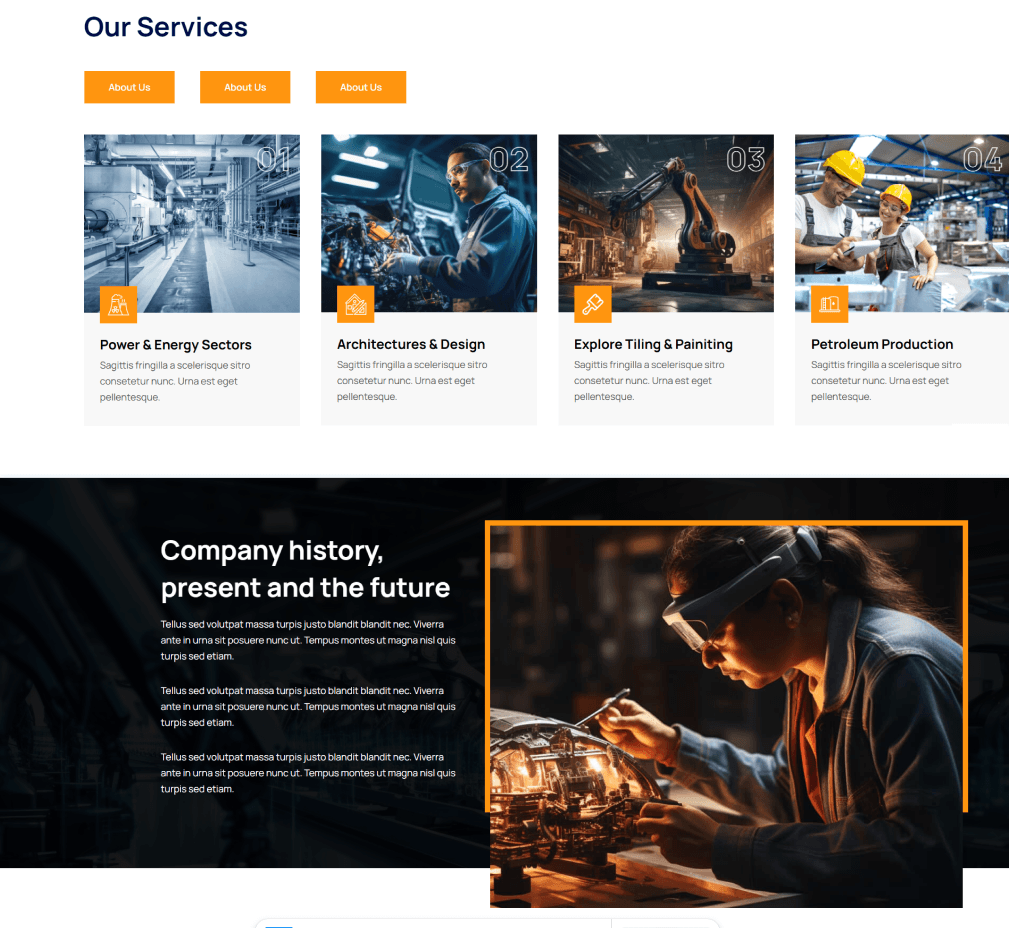 Для проекта выбрали шаблонный подход с глубокой адаптацией под задачи завода. Это позволило сократить сроки и бюджет, но при этом собрать не просто типовую страницу, а рабочий лендинг с продуманной структурой, визуальной подачей под нишу и удобной административной частью.