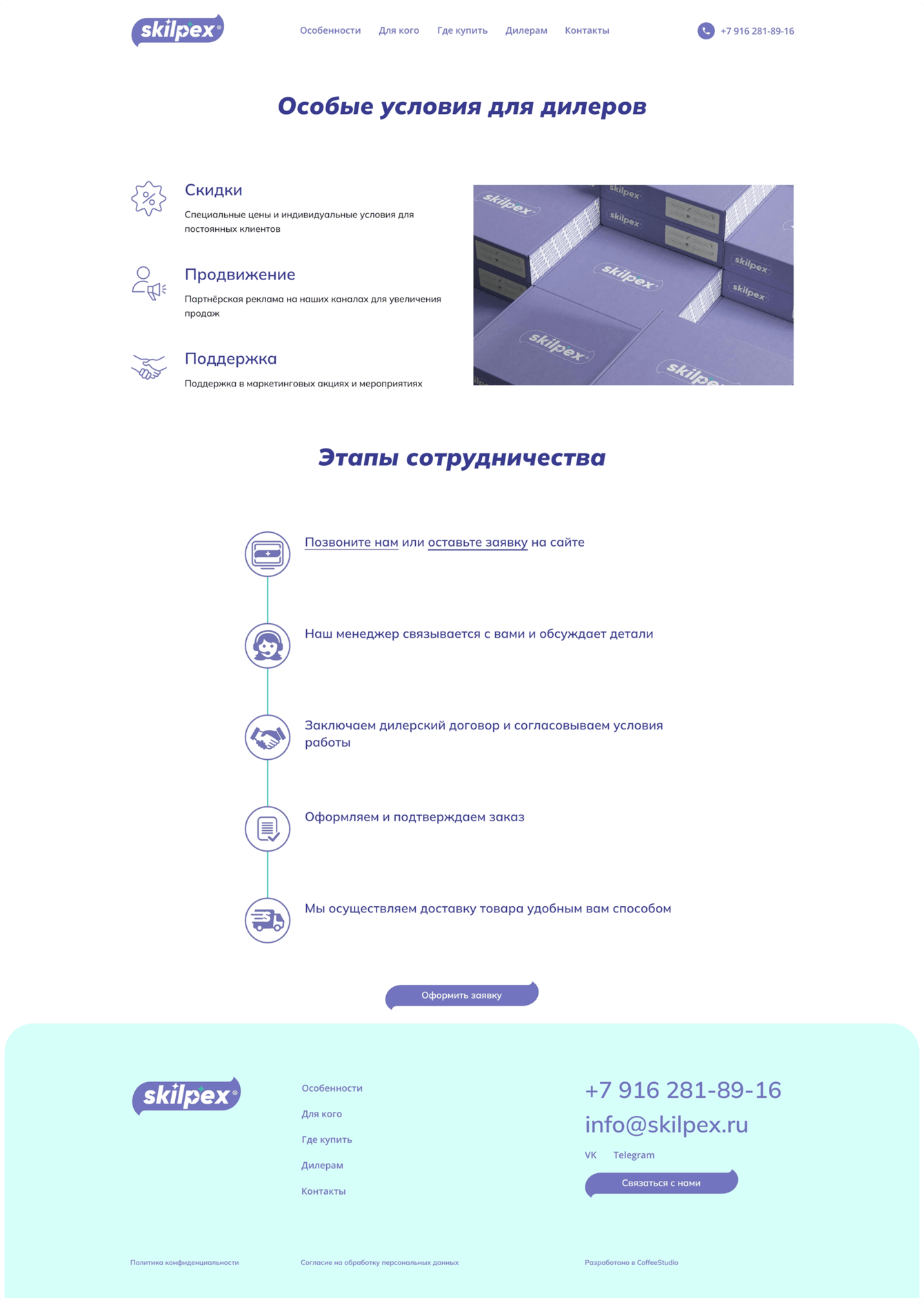 — Создать дополнительную страницу для привлечения потенциальных дилеров продукции.