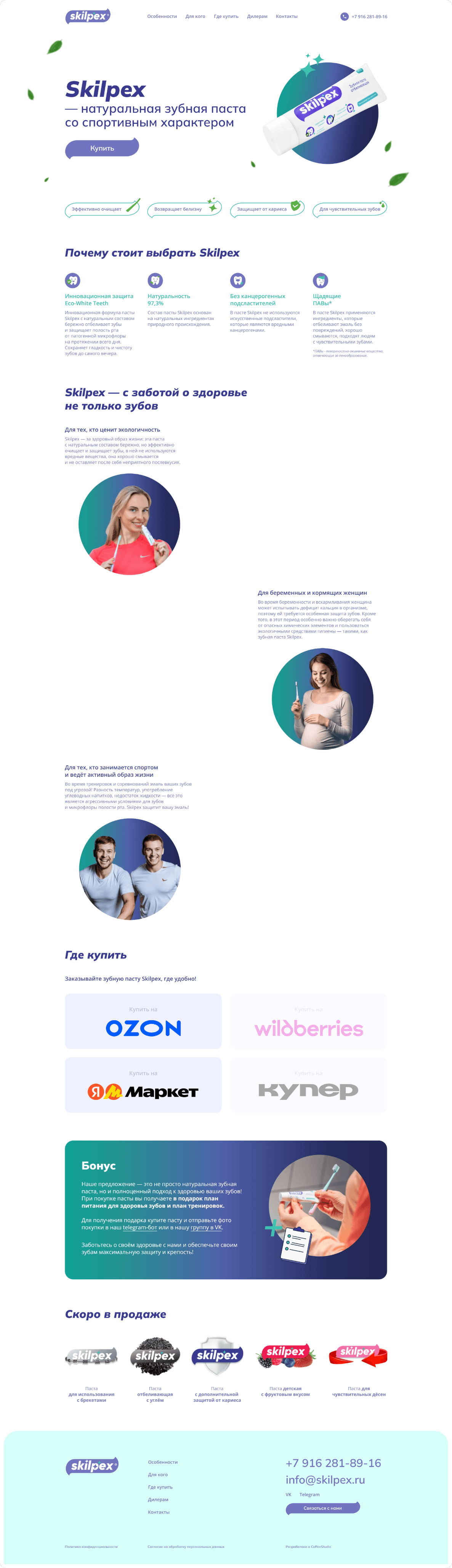 Цель: создать посадочную страницу, где люди могли бы получить основную информацию о новой зубной пасте и выбрать удобный им способ ее покупки.