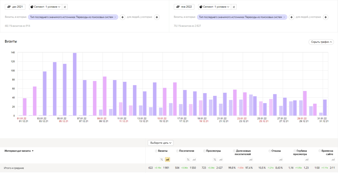— Увеличили трафик из поисковых систем, количество визитов, посетителей и просмотров в 3 раза.