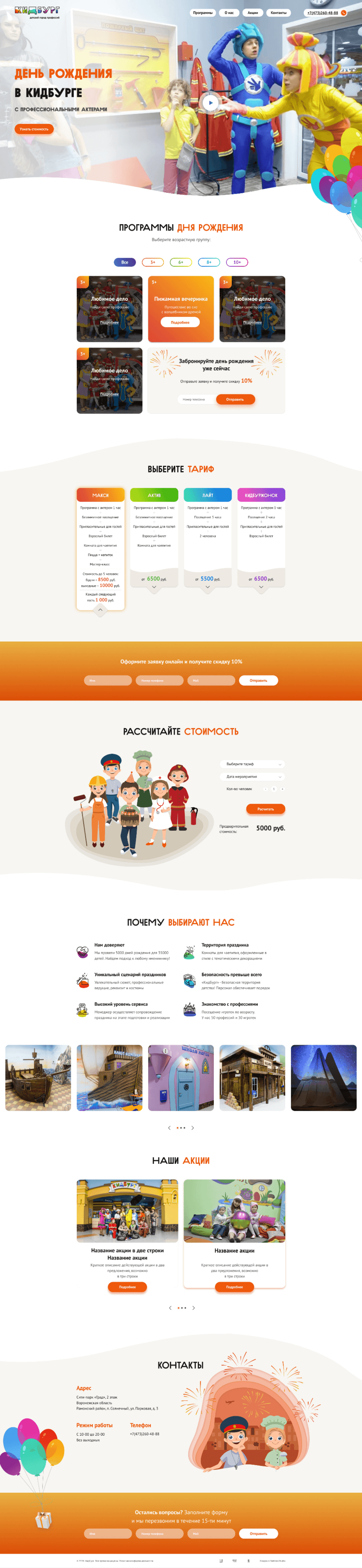 Главной задачей было сделать «праздничный» дизайн сайта, но при этом не переборщить с элементами декора и максимально выгодно предоставить информацию о воронежском филиале сети детских развивающих центров.