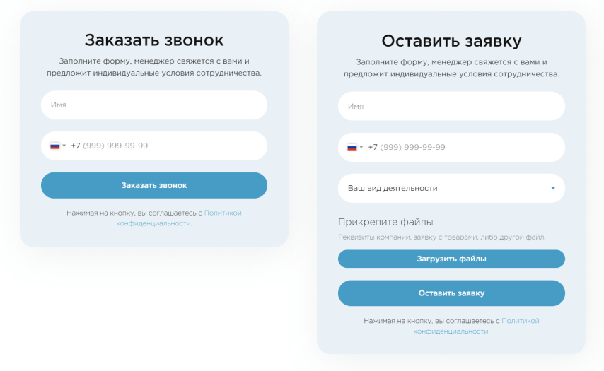 Кроме открытых форм, оформили pop-up в фирменном стиле компании. Можно оставить заявку или заказать обратный звонок