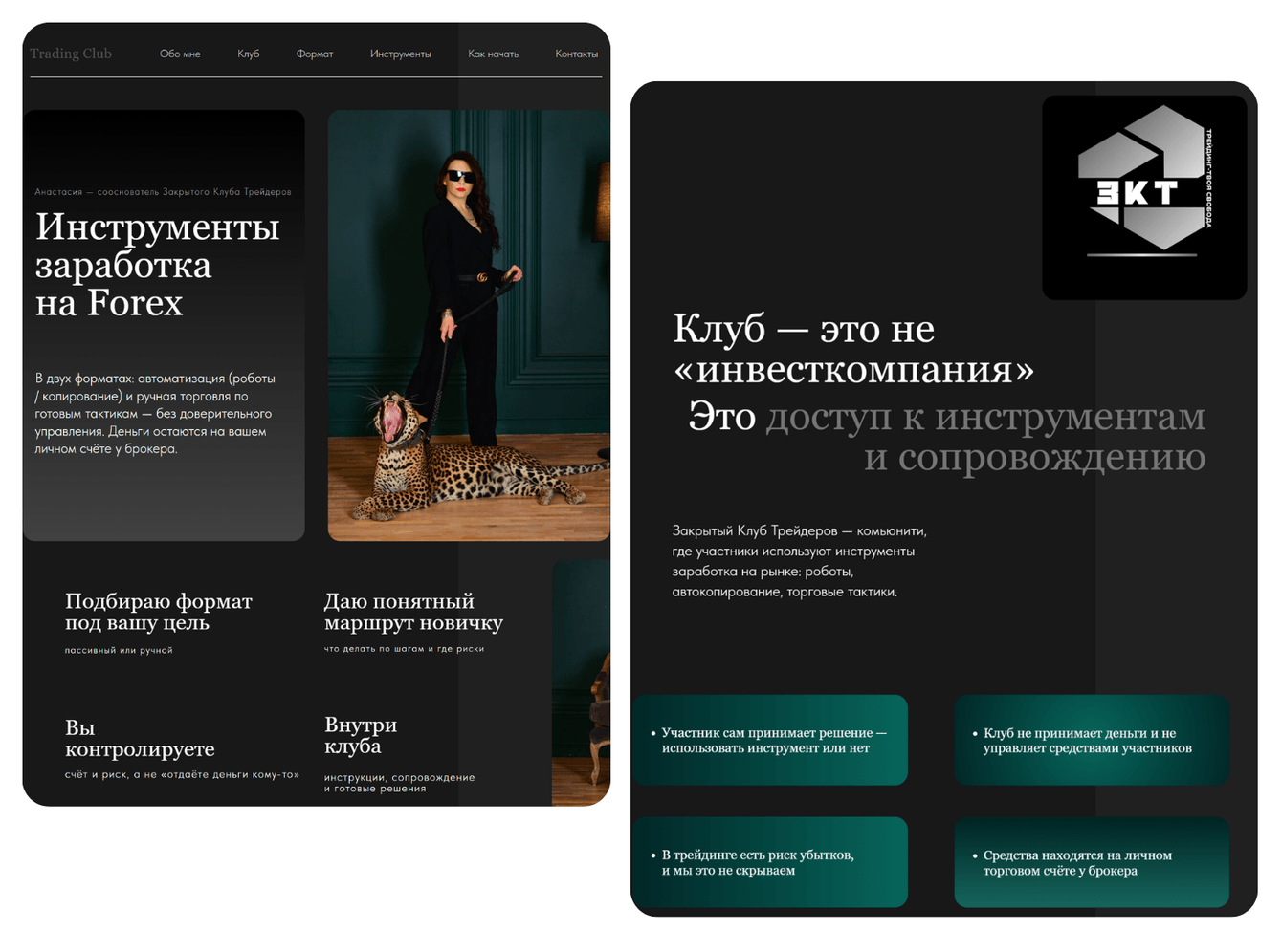 В результате получился лендинг, который объясняет форматы клуба простым языком, снижает недоверие к финансовой теме и ведёт пользователя к первому контакту без агрессивной продажи.