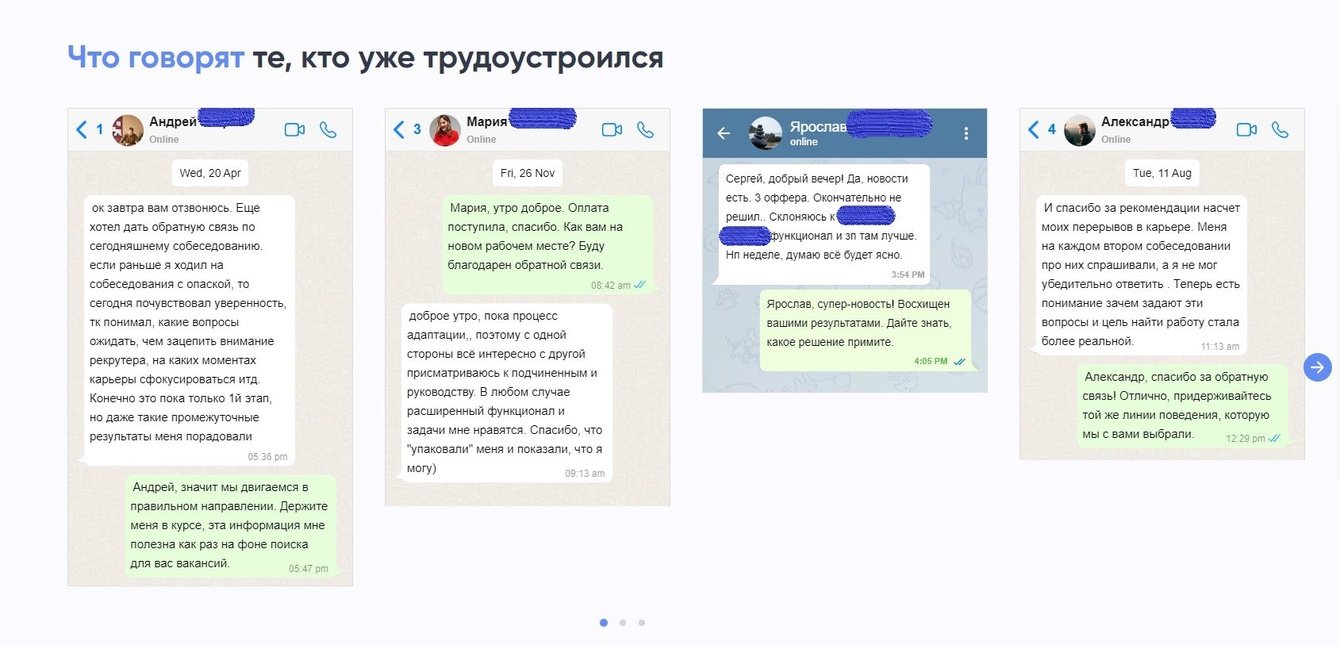 Текст почти везде написан от первого лица, с использованием цитат. Чтобы все это не выглядело голословным, на лендинге размещены отзывы довольных клиентов.