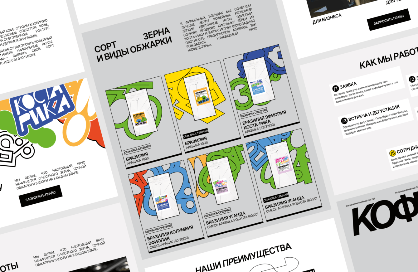 В итоге получился сайт, который не просто рассказывает о кофе, а передаёт характер бренда Кофельтуры, объединяет сообщество обжарщиков, бариста и ценителей, делает процесс покупки и сотрудничества лёгким и приятным, а визуальный язык — ярким, современным и эмоциональным.