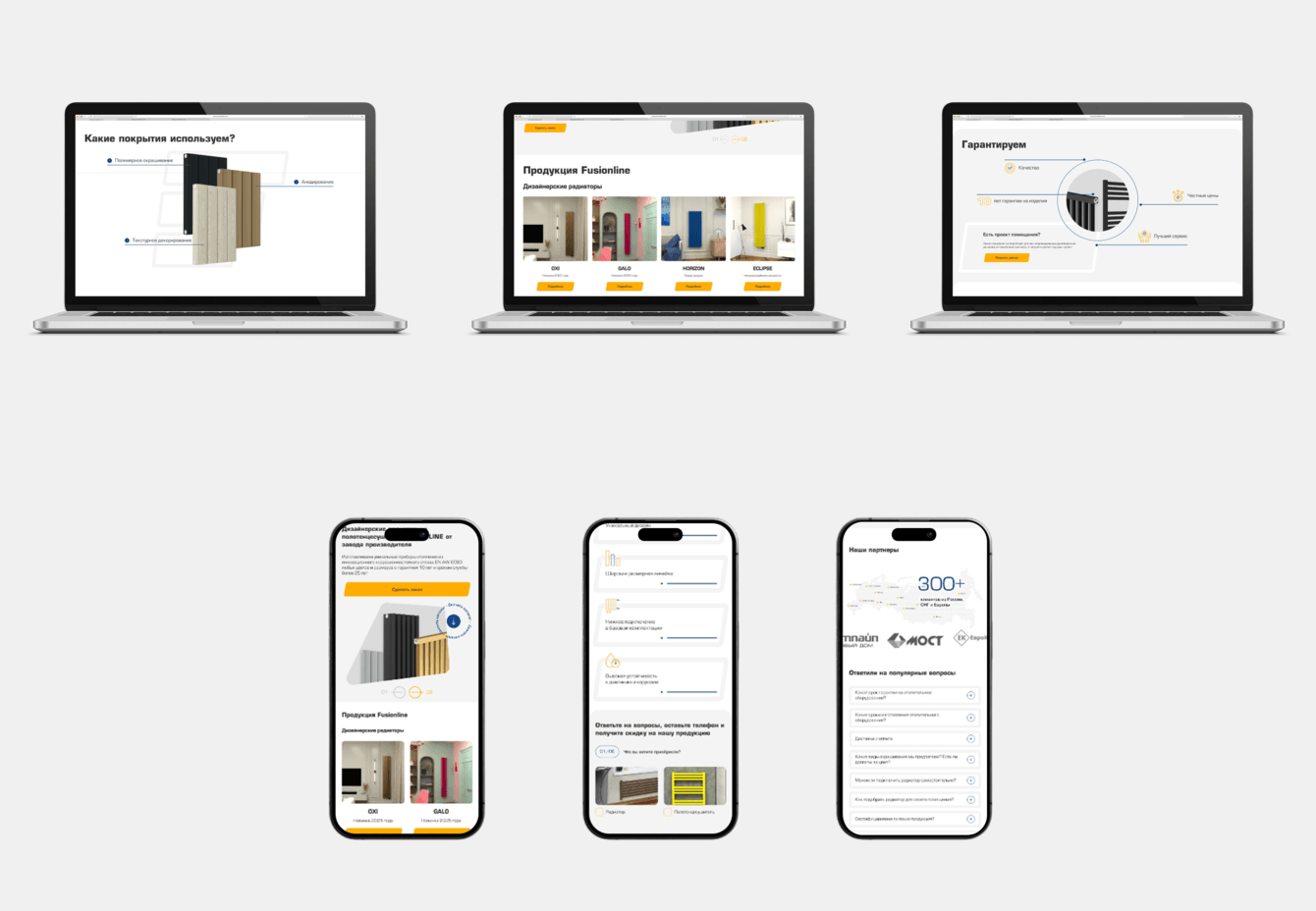 В результате Fusionline получила стильный и выверенный лендинг, который усиливает позиционирование бренда как производителя премиальных дизайнерских решений в сфере отопления. Сайт стал инструментом формирования доверия, демонстрации экспертности и визуальной ценности продукции. Он помогает пользователю понять, почему Fusionline — это выбор для тех, кто ценит не только функциональность, но и эстетику, долговечность и индивидуальный подход.