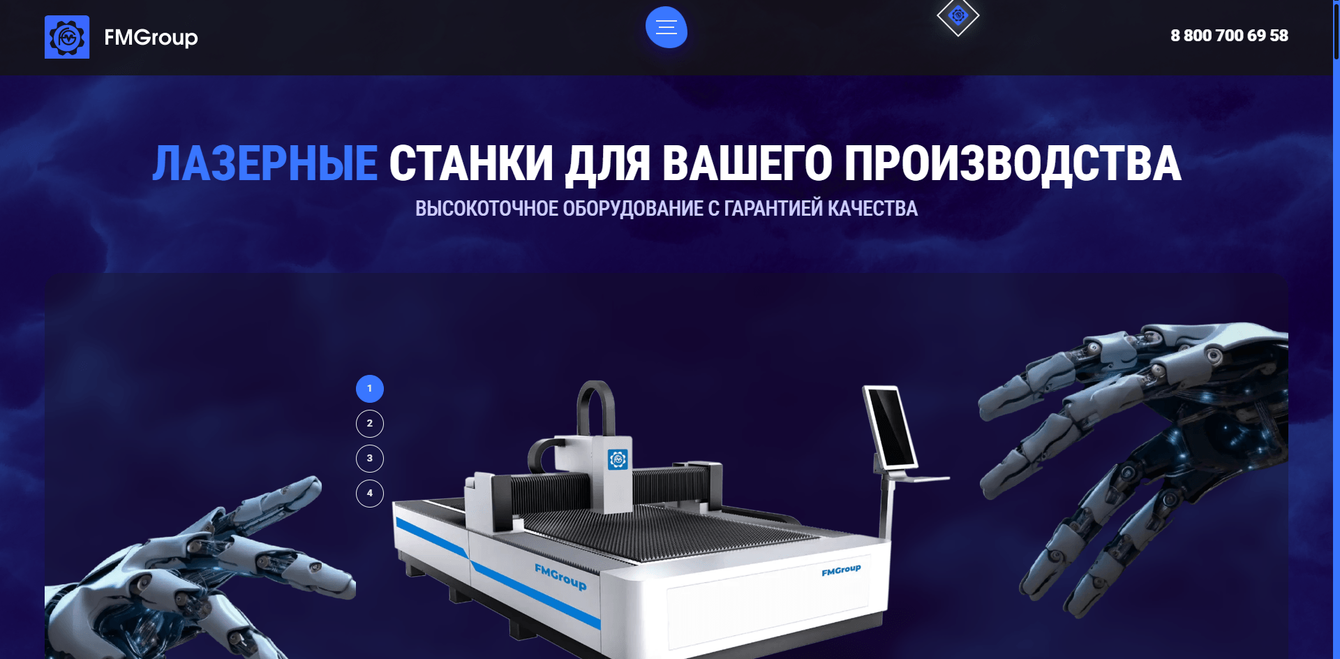 Наш клиент — FMGroup, производитель лазерных станков, который обратился к нам за созданием современного и эффектного лендинга.