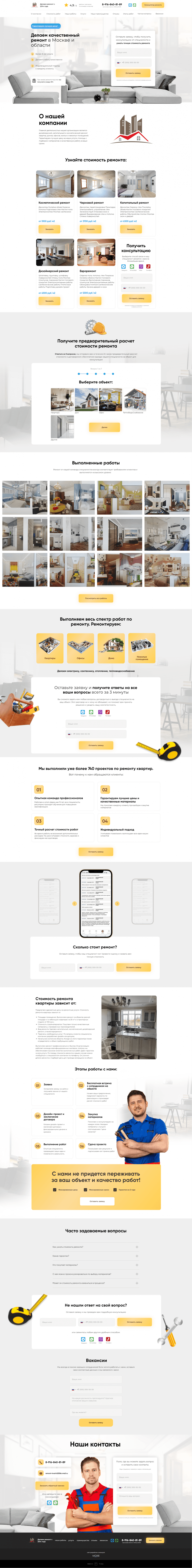 Клиент: компания по ремонту квартир, домов и офисов в Московской области. Задача - разработать продающий сайт под ключ: написать тексты, подобрать стилистику, сделать дизайн и верстку на Tilda, подключить квиз и формы сбора заявок.