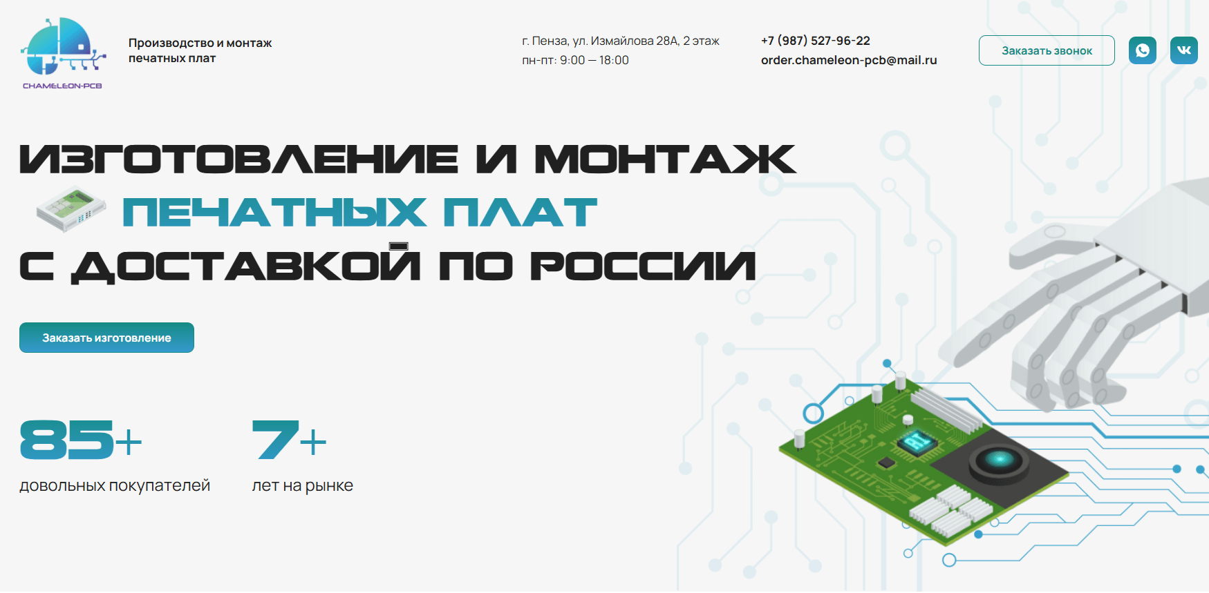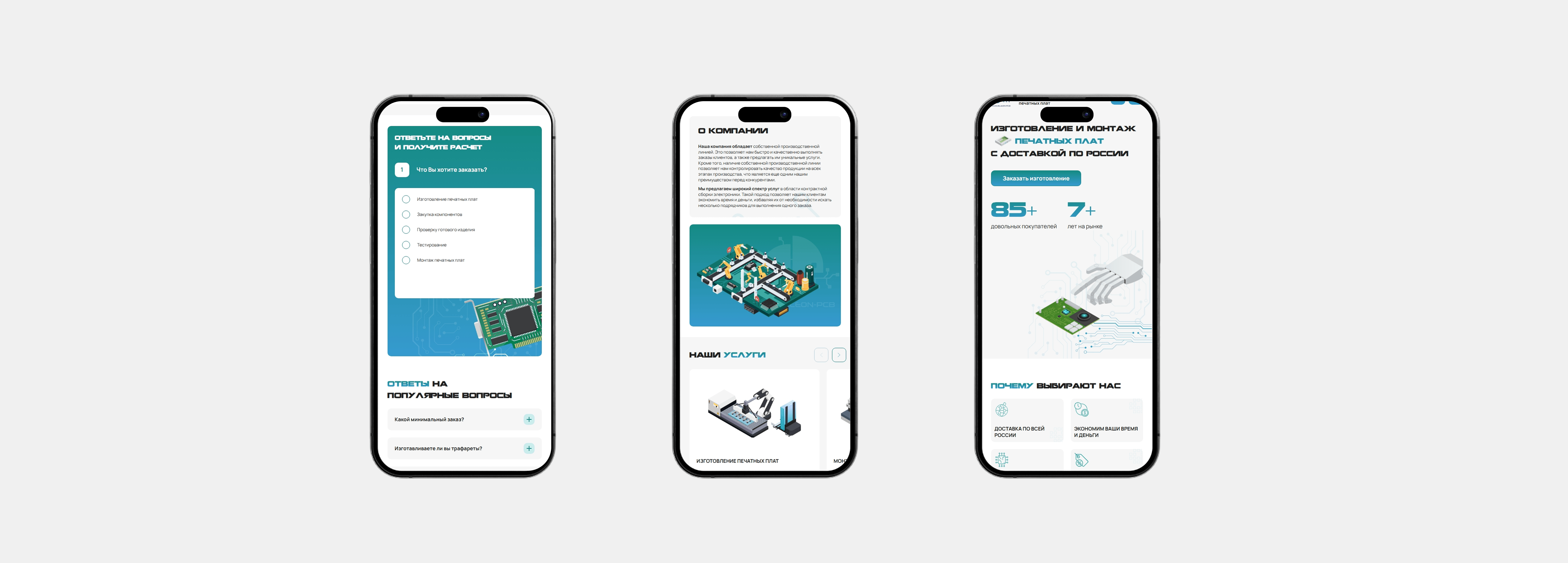 Сначала мы изучили рынок и конкурентов: как конкуренты представляют свои услуги по печатным платам, какие блоки информации они используют, и где можно сделать лучше. Главная цель была ясна: пользователь должен сразу понять, что Ювента решает его задачи быстро, качественно и на профессиональном уровне.