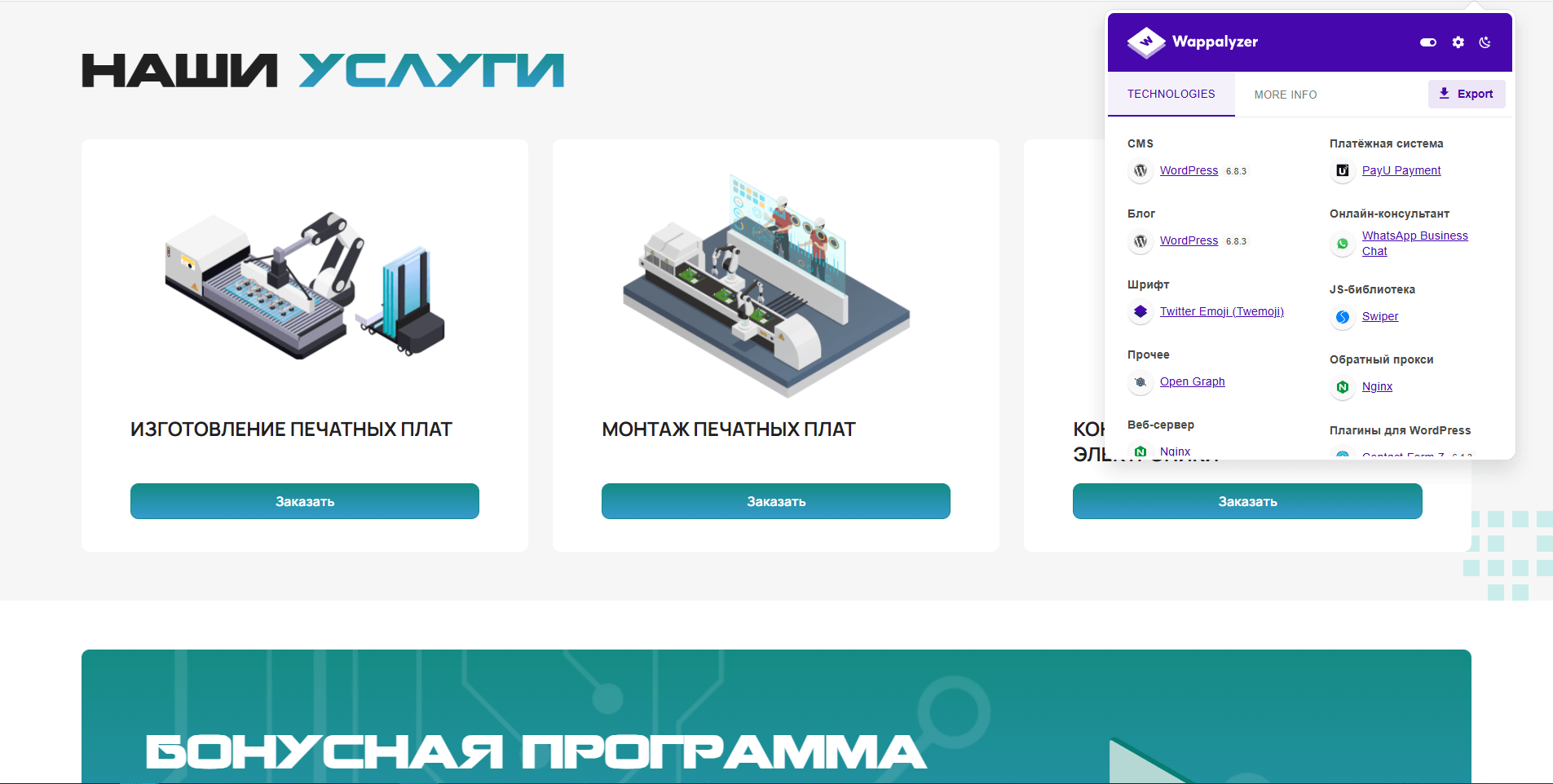 Сайт реализован на PHP с CMS WordPress, что обеспечило стабильность, масштабируемость и высокую производительность. Мы построили структуру лендинга так, чтобы каждый блок — карточка услуги, процесс работы, форма заявки — был логично выстроен и легко управляем.