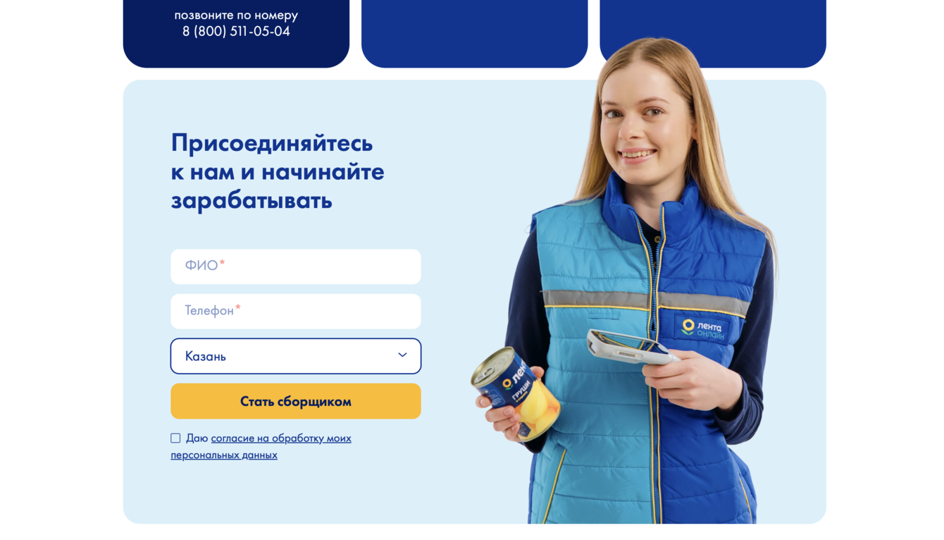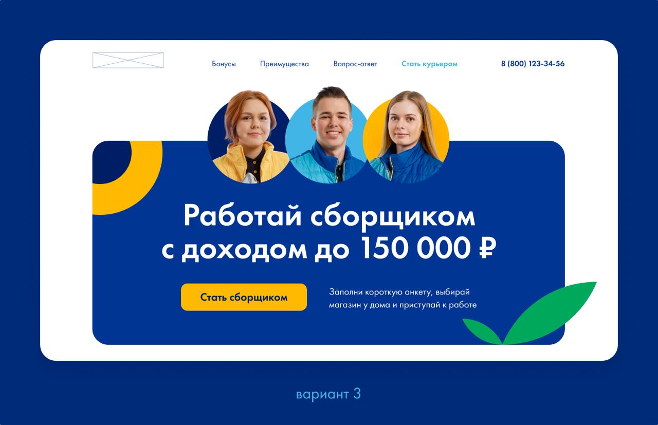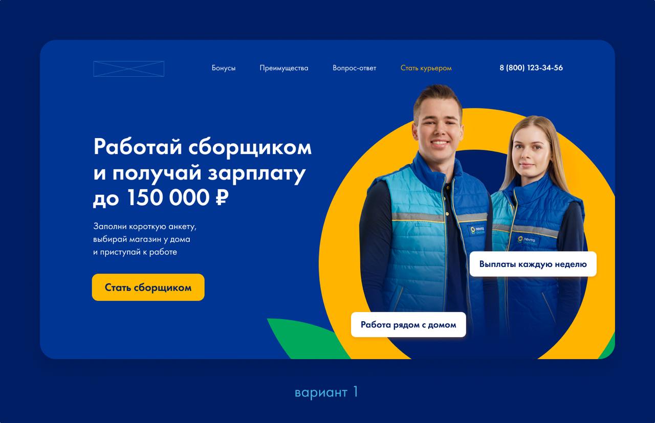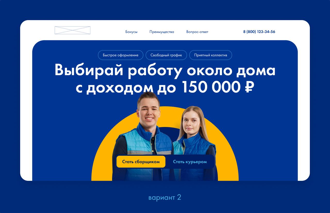 Сделали переключатель «Курьер / Сборщик». Один сайт — на две вакансии. Меняется не только текст, но и картинки, чтобы человек сразу видел «своё».