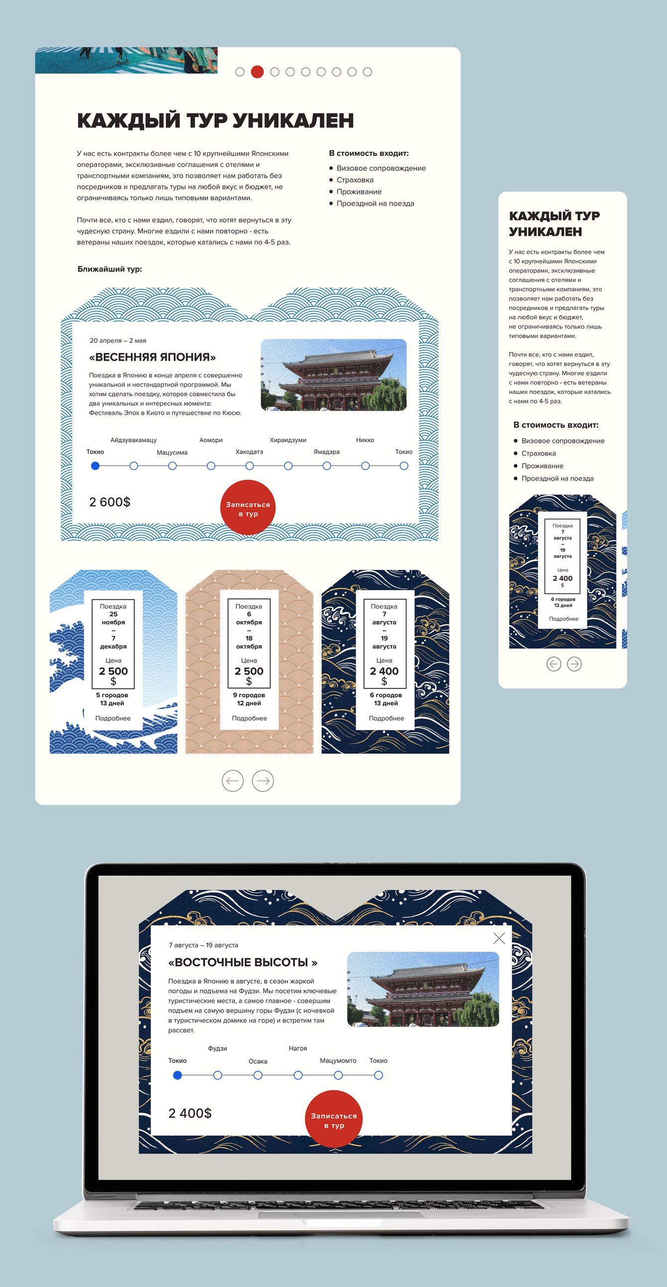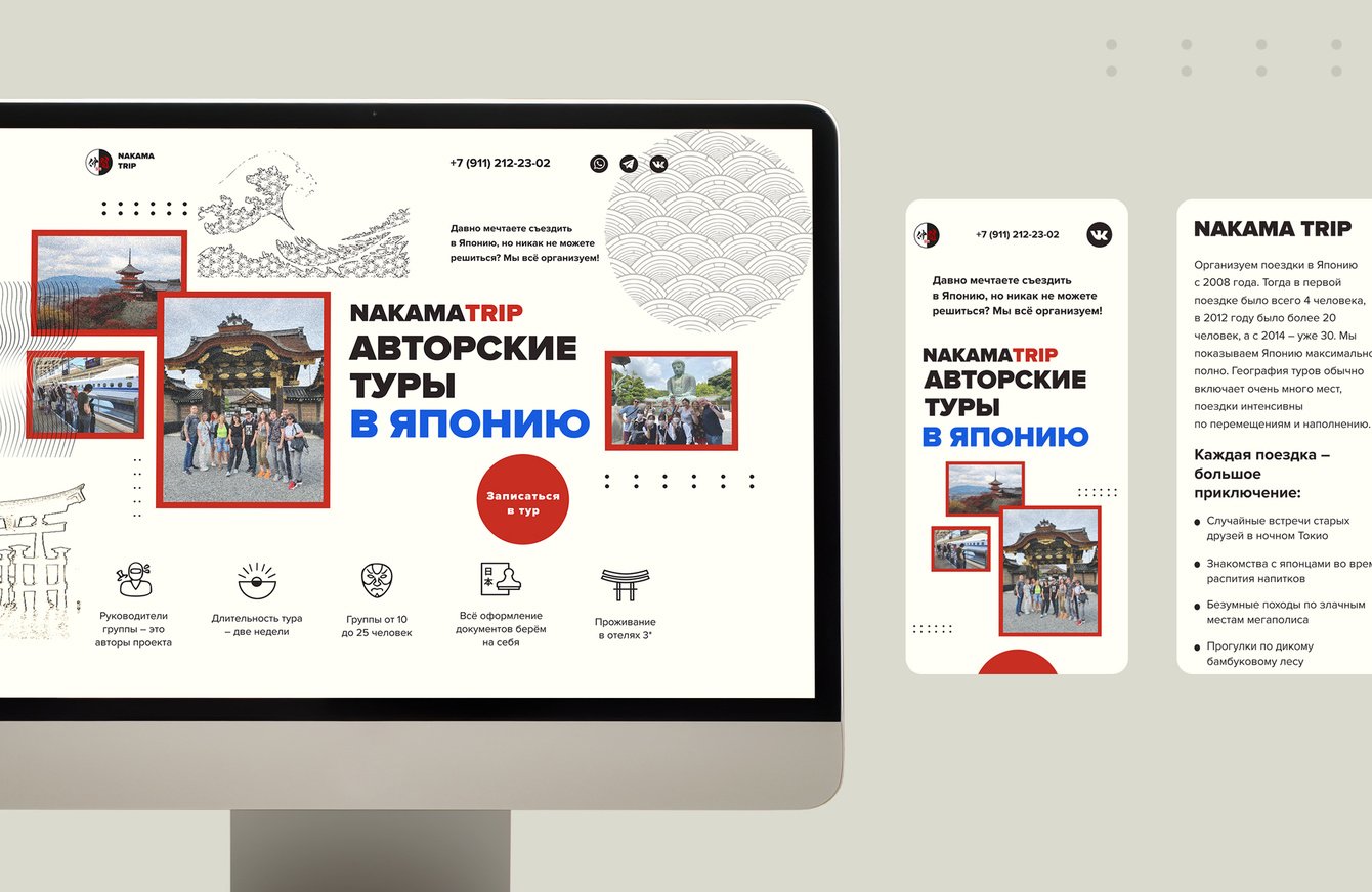 Разработать лендинг для авторского проекта по организации туров по Японии.