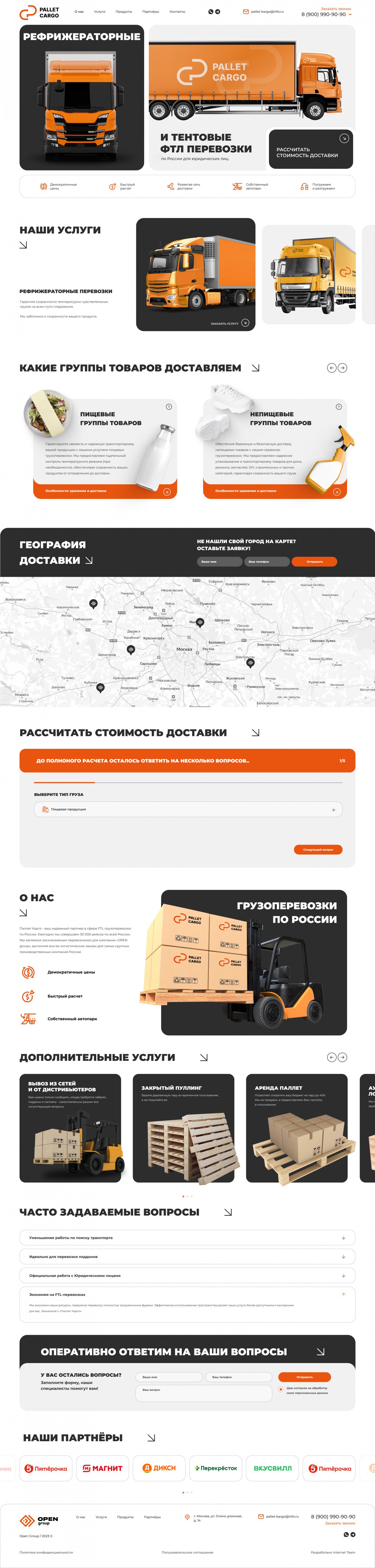 Задача - разработать лендинг page для презентации услуг компании и калькулятор для расчета стоимости грузоперевозки.