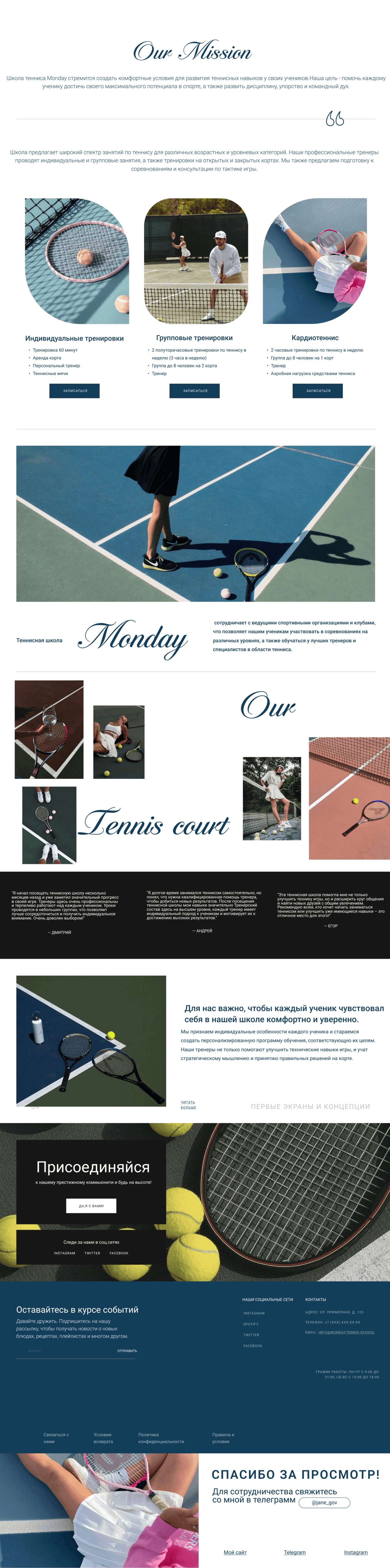 Создатели профессиональной школы тенниса попросили сделать функциональный и престижный сайт, который познакомит клиентов со школой и их подходом.