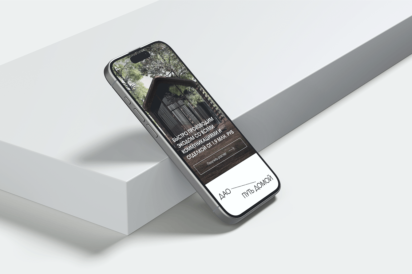 Проведён детальный анализ бизнеса клиента, включая изучение философии бренда. Оценены ключевые аспекты продукта: модельный ряд, патентованная технология (разборный каркас из фанеры, сборка за 7–14 дней без тяжёлой техники), портфолио (208 реализованных домов, включая отели в Крыму, Калужской и Ленинградской областях) и целевая аудитория (частные клиенты, бизнес для глэмпинга). На основе этого разработан прототип сайта.