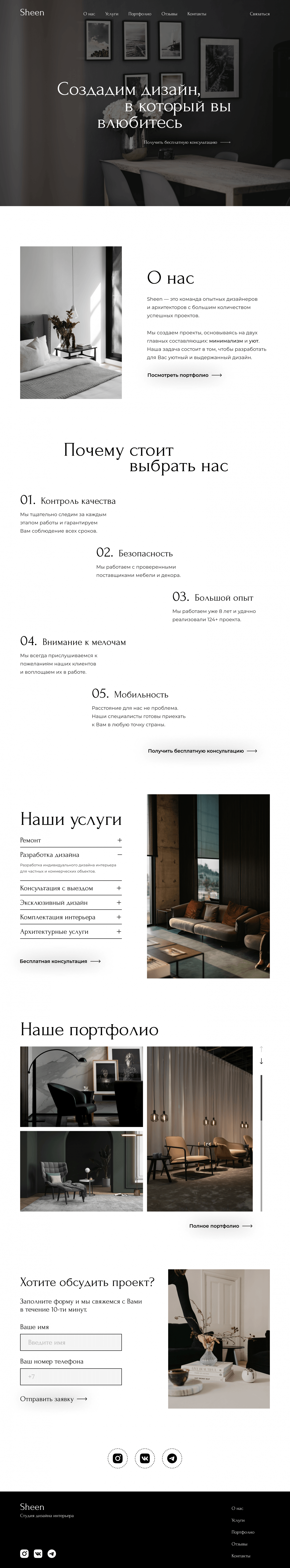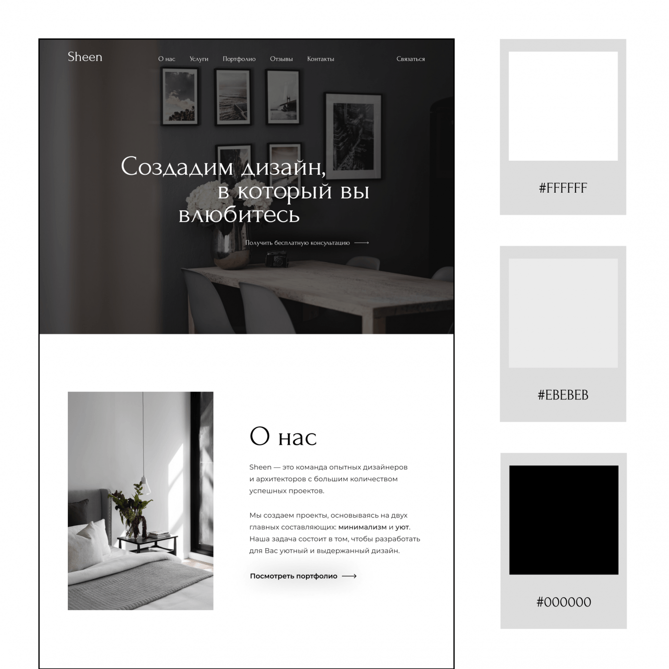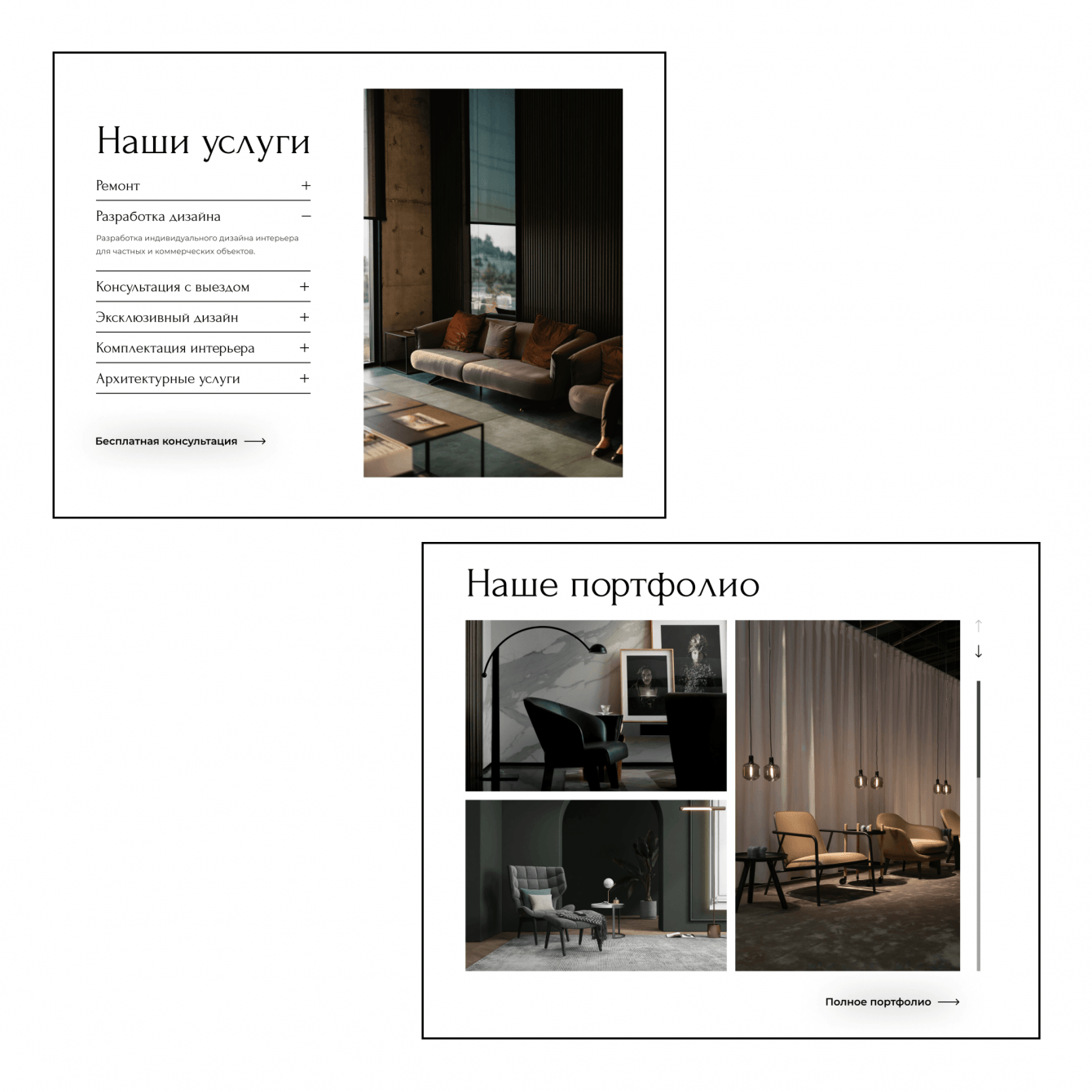 Задача проекта: создать лендинг для привлечения ЦА и увеличения заявок по разработке дизайна интерьеров. Сайт должен быть строгим и эстетичным.