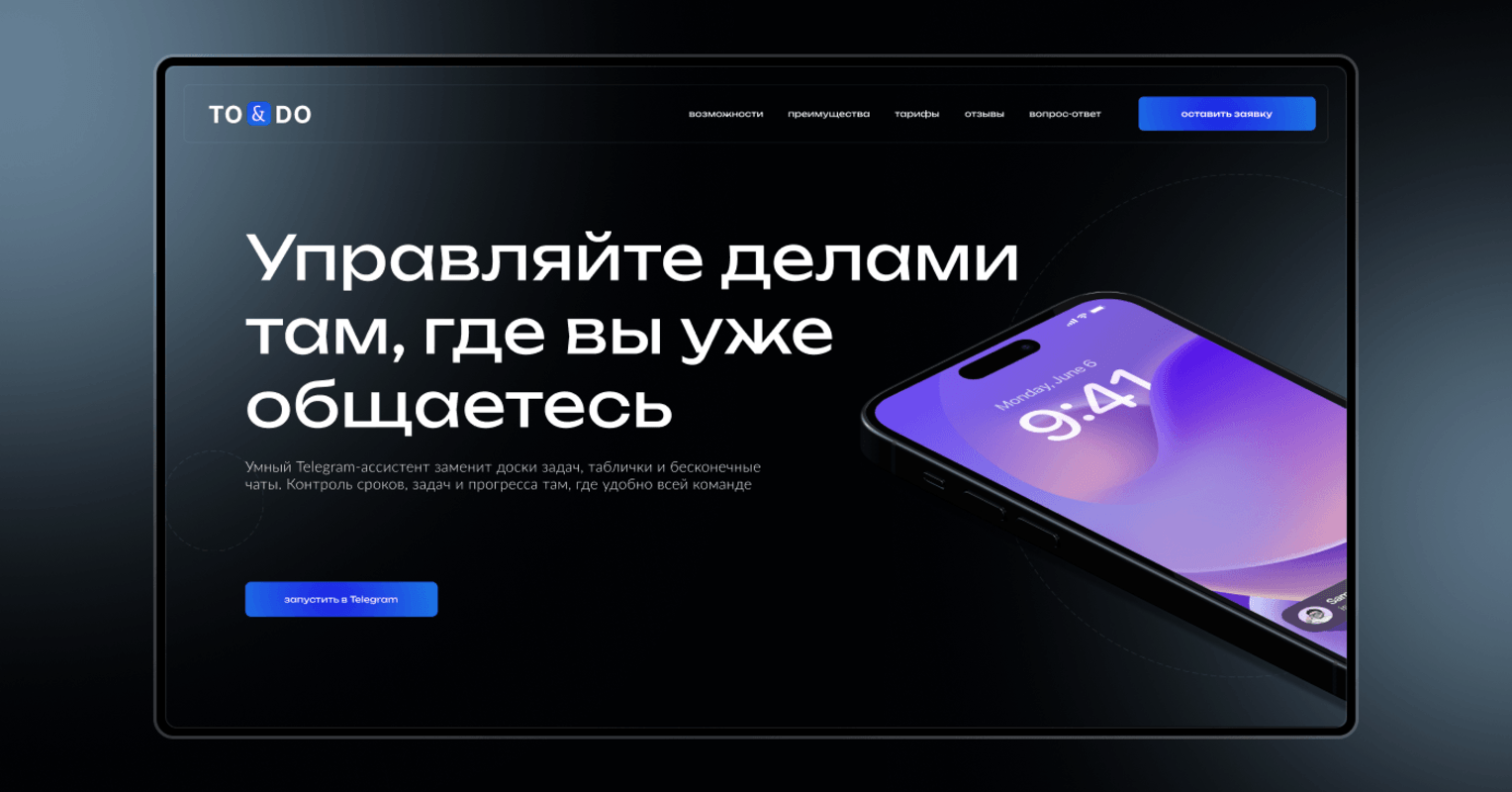 Задача: разработать лендинг для Трекера, который представит Цифровой продукт пользователям и станет главной точкой входа и конверсии.