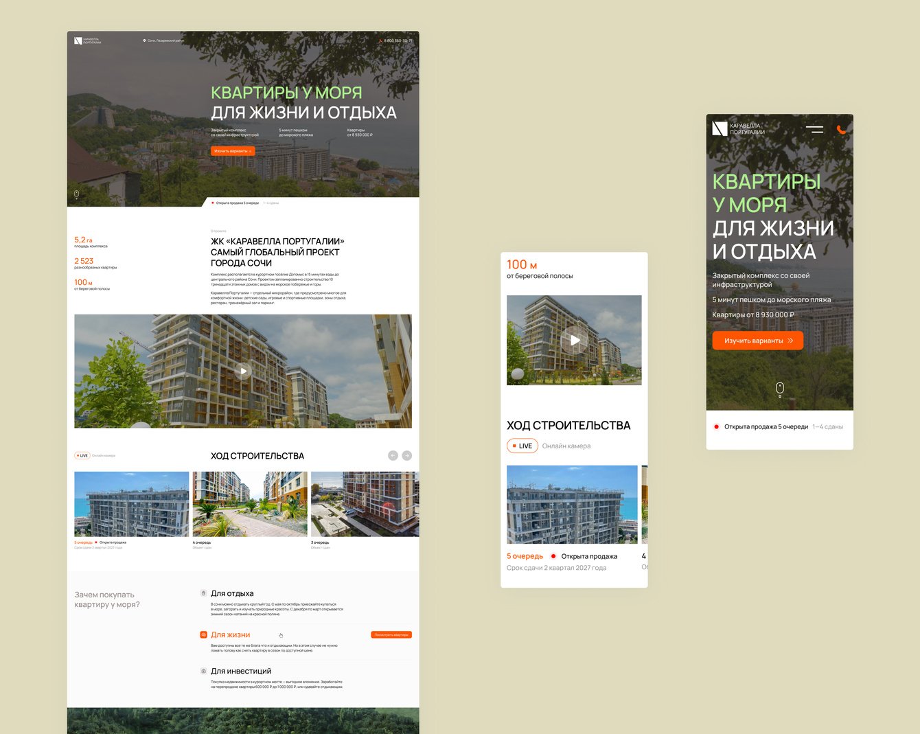 Разработать современный лендинг для жилого комплекса «Каравелла Португалии»