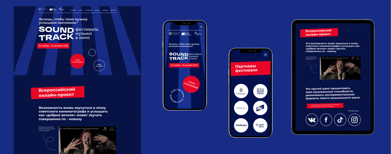 Московский продюсерский центр, киностудия им. Горького и Министерство культуры РФ запустили музыкальный проект Soundtrack. Проект призван помочь молодым музыкантам заявить о себе на большую аудиторию. Для участия в нем было необходимо придумать и снять видео с кавер-версией на песню из советского кинематографа киностудии им. Горького. Победители проекта получили денежные призы и контракты с концертными агентствами. Стояла задача рассказать о проекте, условиях участия для музыкантов, рекламных возможностях для СМИ и спонсоров. Разработать motion-ролики для рекламы в социальных сетях. Запустить проект в сжатые сроки.