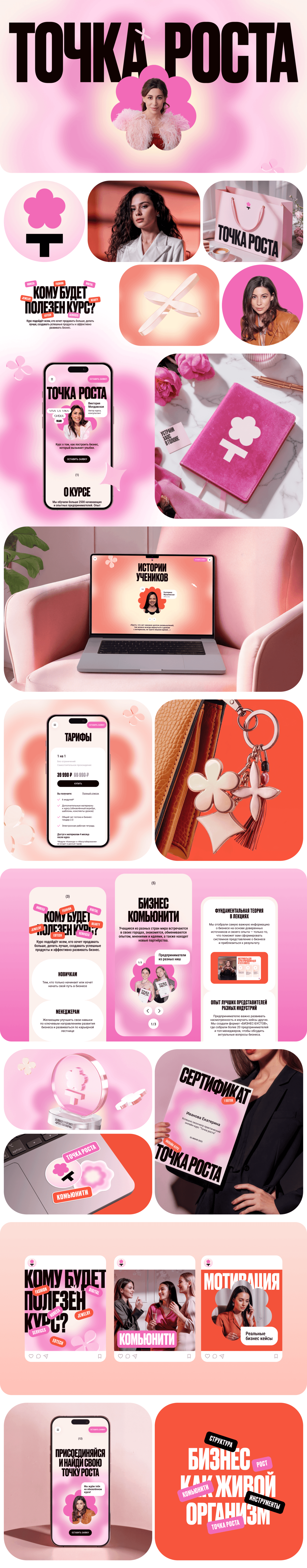 Авторскому курсу предпринимательницы Виктории Молдавской* «ТОЧКА РОСТА» нужны визуальная система и лендинг, на котором потенциальные участницы могли бы изучить программу, информацию о спикерах и преимуществах, а также оставить заявку.