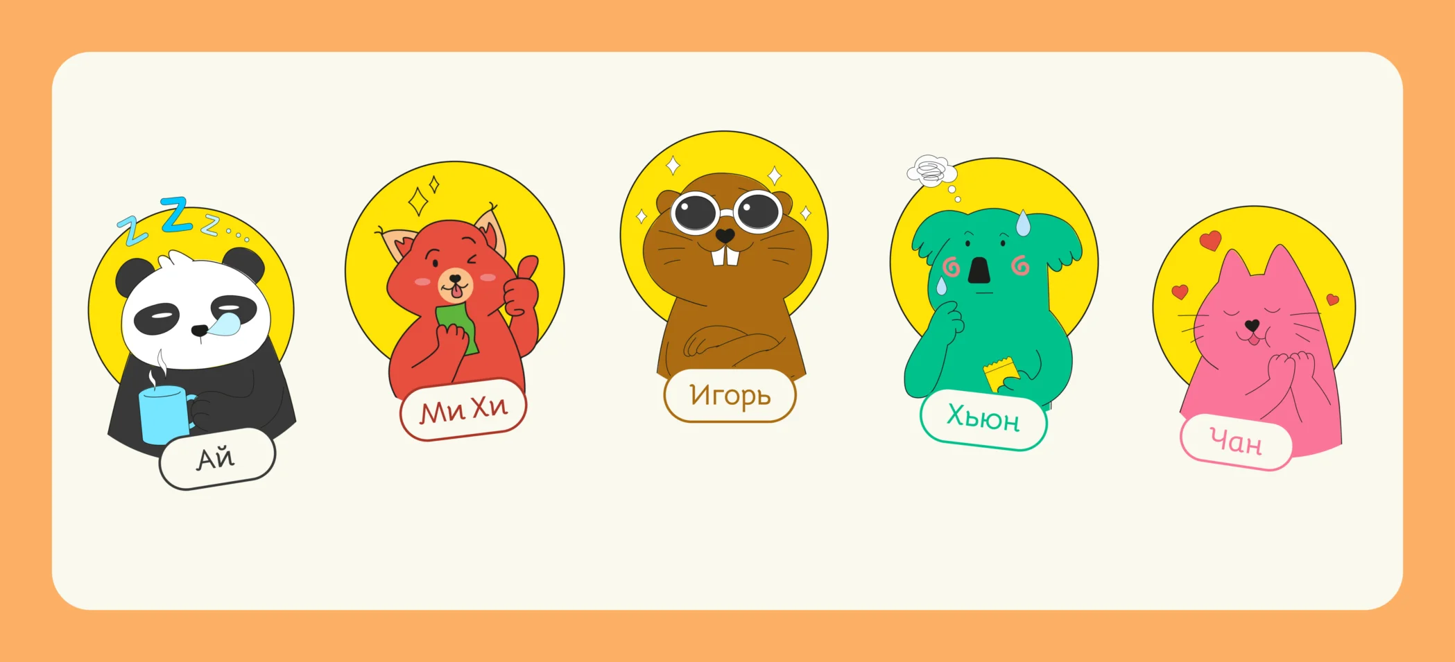 Мы искали баланс между сохранением позитива и «человечности», поэтому многие первоначальные идеи пришлось переработать. Например, тревожная коала Хьюн стала ответственной. Тревожность, пожалуй, стала маркером поколения Z, но вместе с заказчиками пришли к тому, что это больше про негативные ощущения. Характеристику сохранили между строк: Хьюн перепроверяет каждую деталь из-за гиперответственности.