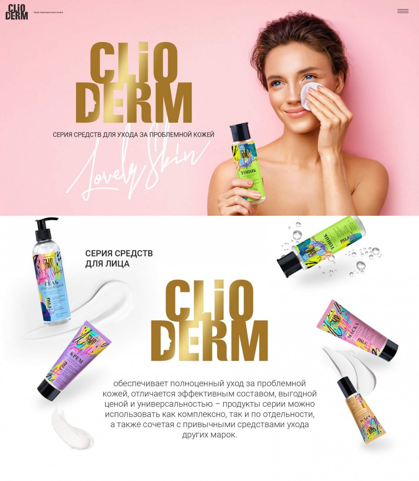 Создать с нуля промо-сайт с индивидуальной разработкой для продвижения серии средств от прыщей.