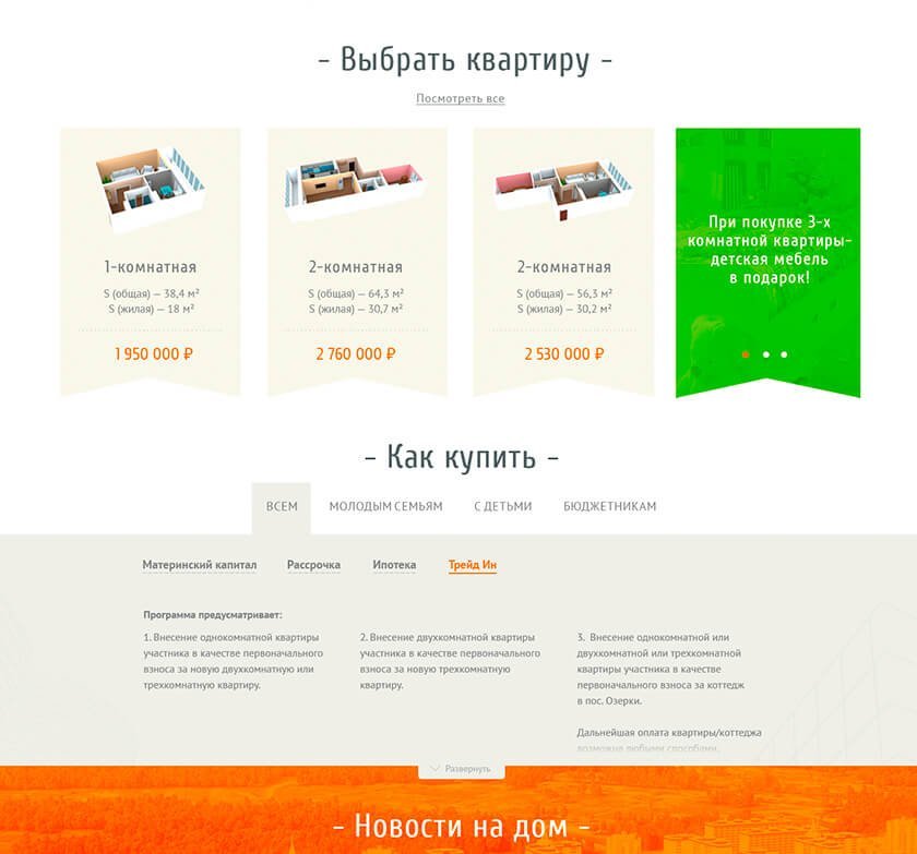 Используя интерфейс и функционал, реализованные на сайте южныеворота, мы разработали для заказчика ещё один сайт для нового жилого комплекса.