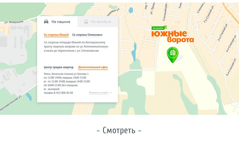 4. Сделали блок с картой и дополнительной информацией, чтобы пользователи могли быстро и легко найти удобный маршрут до «Южных ворот».