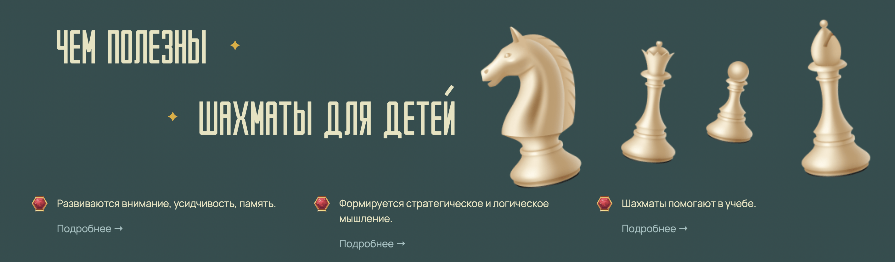 Одна из важнейших задач - показать через сайт, что шахматный клуб это интересные, интеллектуальные занятия, которые объединяют разных детей, как мальчиков так и девочек. Нужно было сломать стереотип, что шахматы это для ботанов.