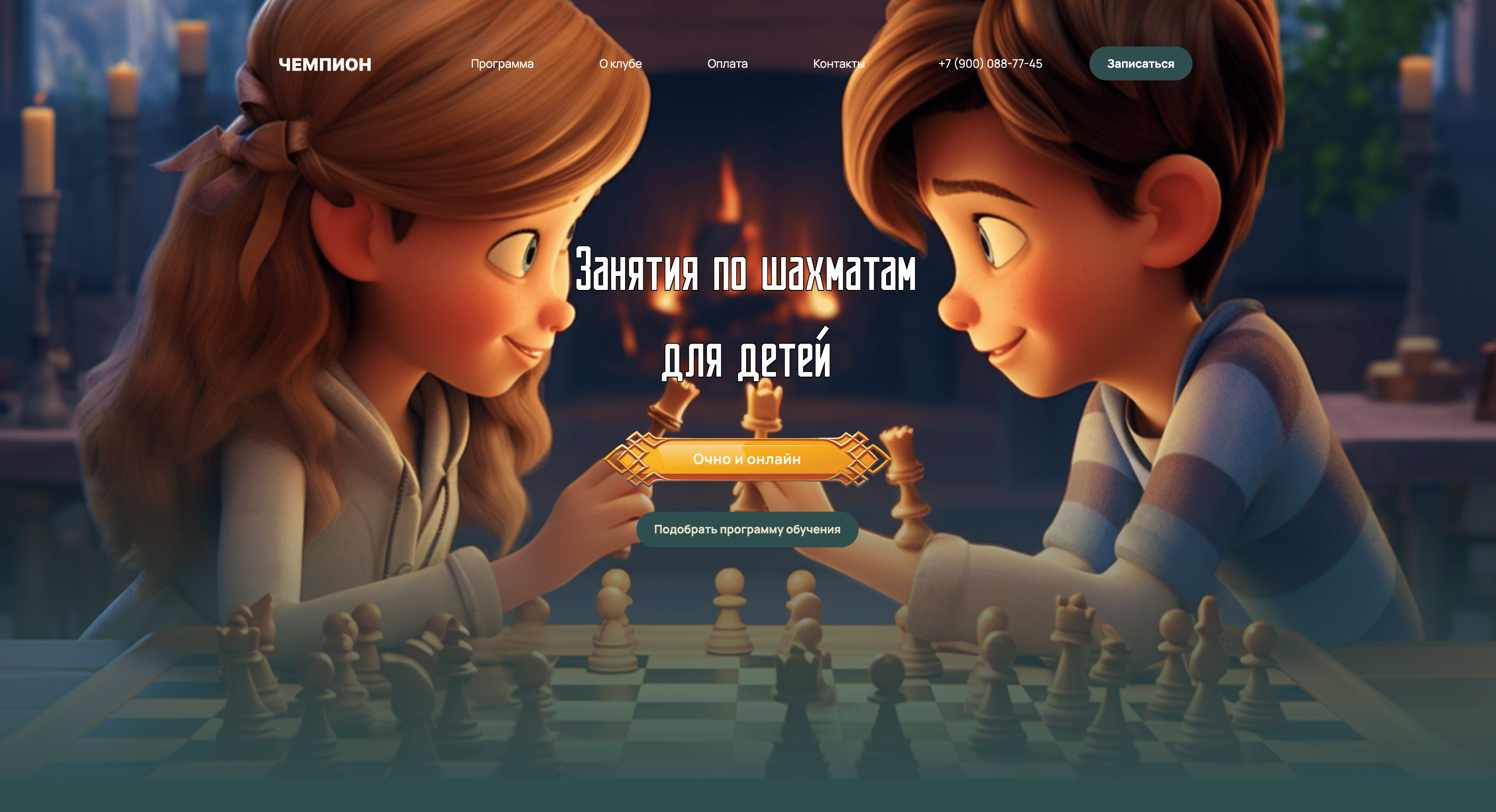Задача - разработать сайт шахматного клуба для детей в Челябинске. Стиль сайта должен быть направлен на детей 4-10 лет. При этом принятие решения остается за родителем.
