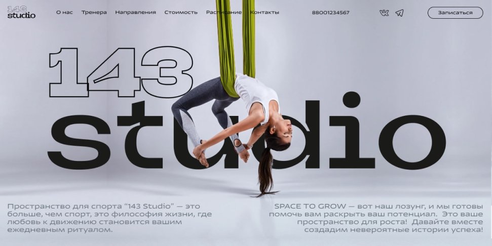 Разработка дизайна по брендбуку и верстка лендинга на Тильде для новой спортивной студии.