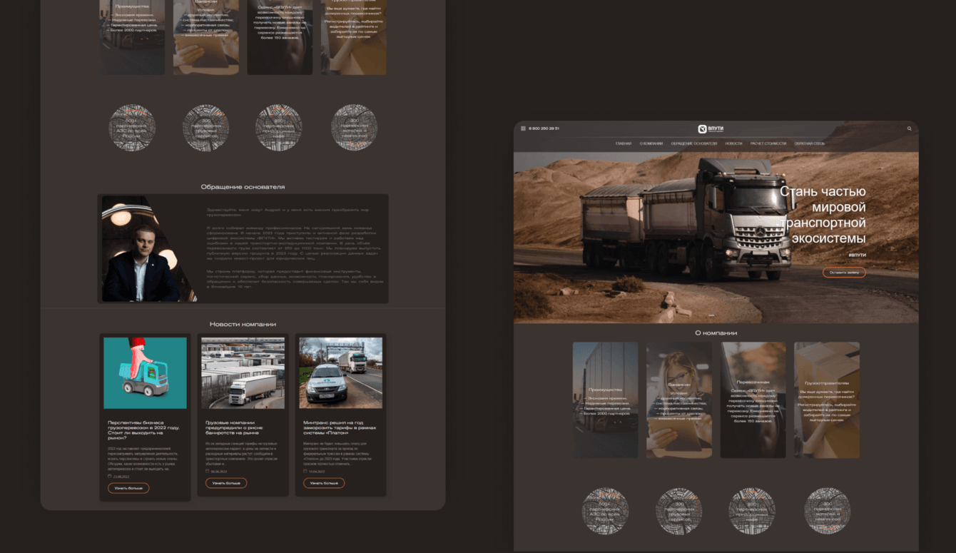 Для сайта компании по предоставлению транспортных услуг будут актуальны следующие решения: адаптивный дизайн для корректного отображения на различных устройствах, интерактивный каталог товаров с функцией фильтрации и сортировки, а также быстрым просмотром ключевой информации. Использование CMS WordPress облегчит управление контентом и обновление информации.