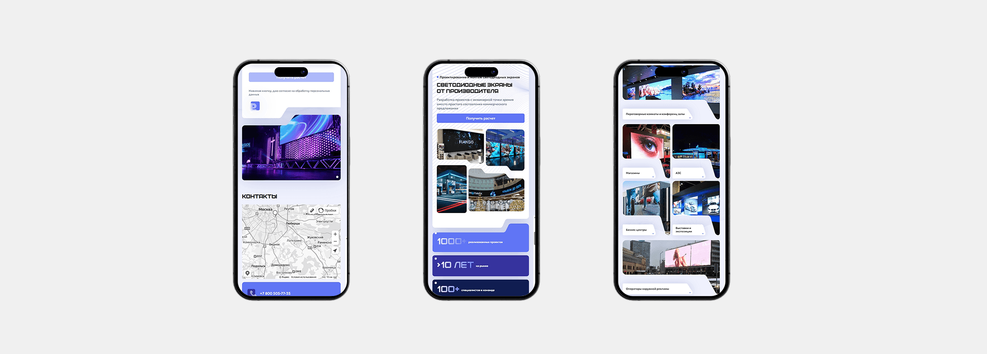 Пользователь проходит путь без сопротивления: от первого экрана до заявки — всё логично, чисто, объяснено языком, понятным даже тем, кто в первый раз сталкивается с LED-техникой.