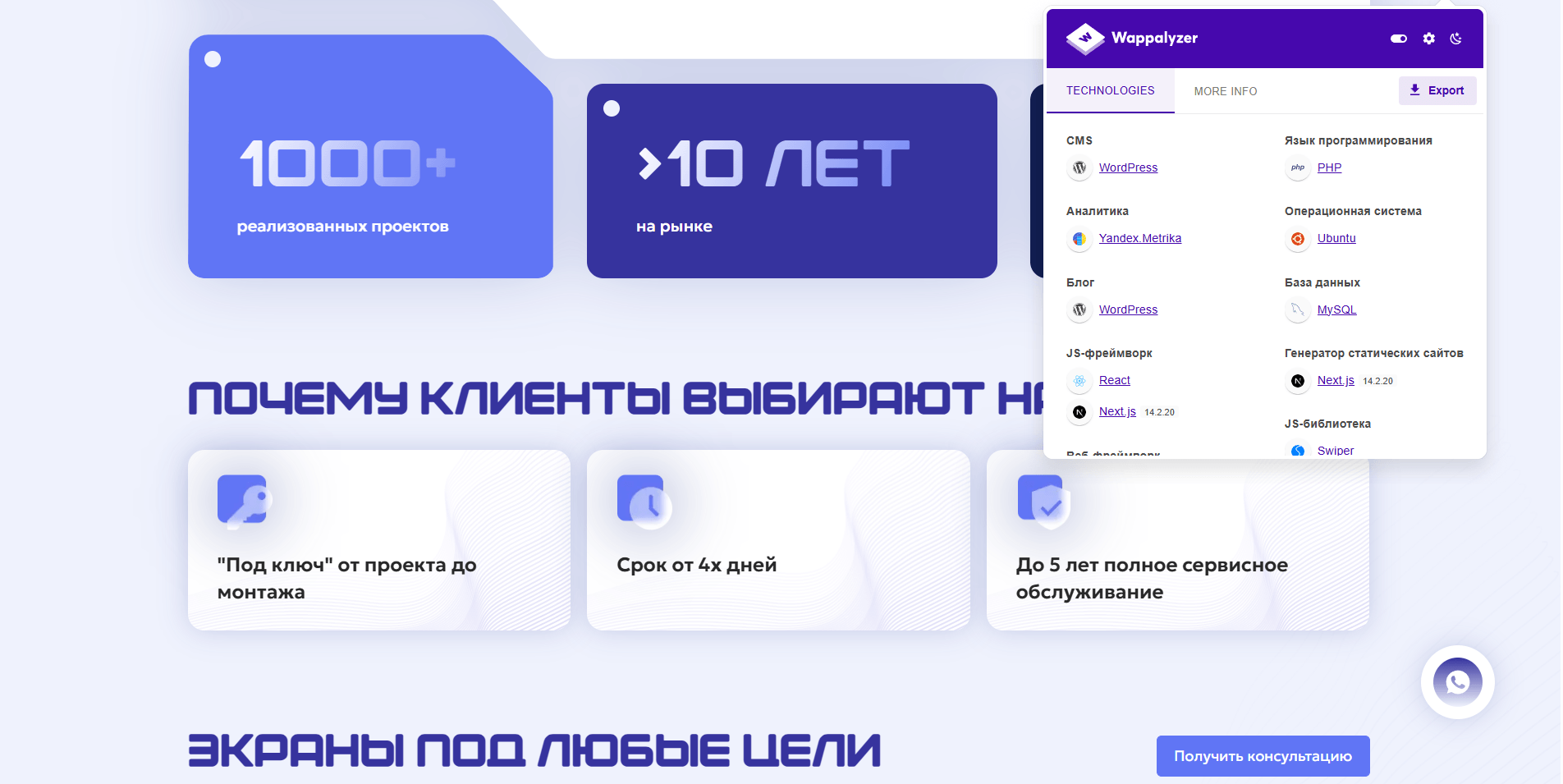 Техническую часть мы реализовали на Next.js с интеграцией на CMS WordPress, чтобы совместить высокую скорость и удобное управление контентом.