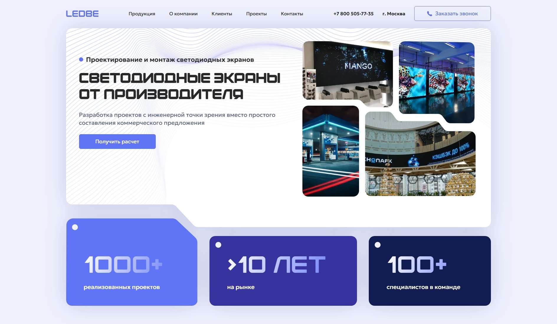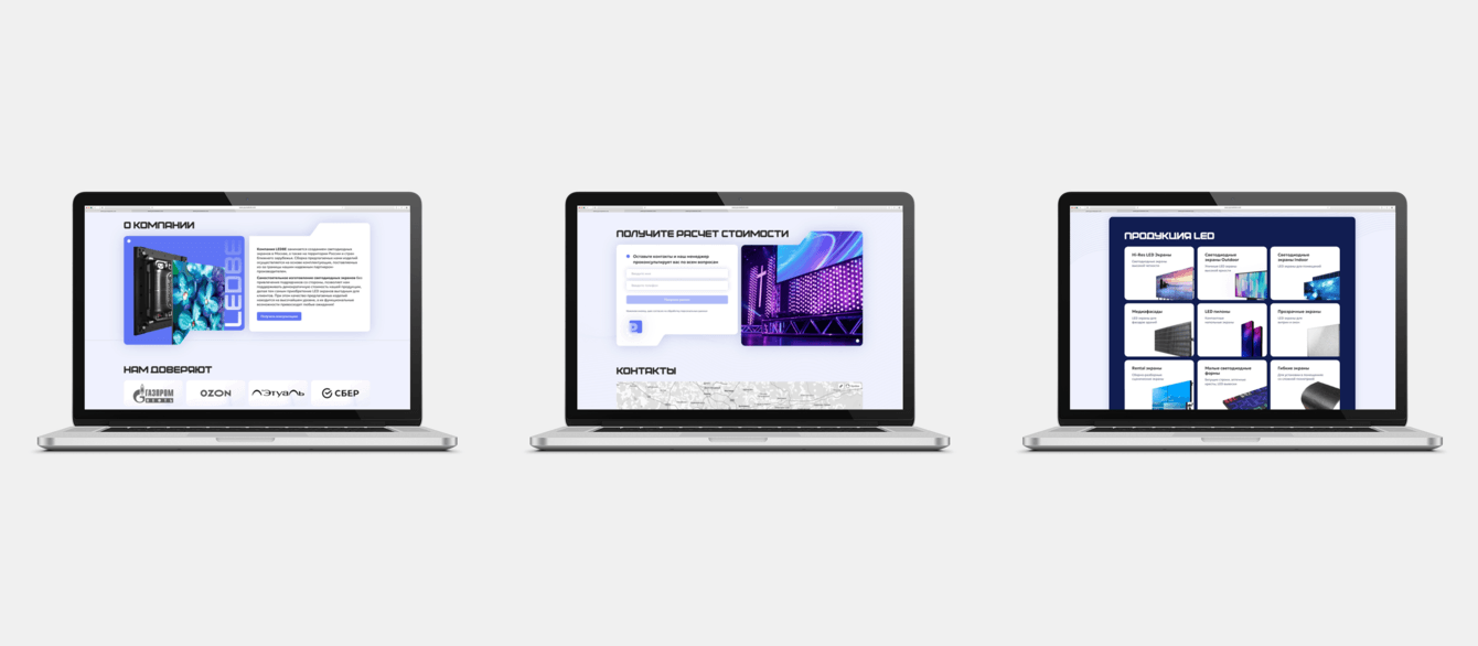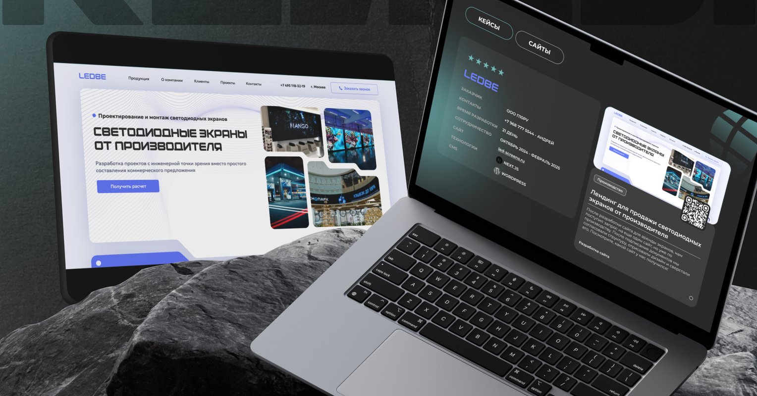 Наш клиент — компания LEDBE, бренд производителя светодиодных экранов, входящий в группу П10РУ. Это команда, которая не просто продаёт LED-экраны, а самостоятельно собирает их из импортных комплектующих, контролирует каждый этап и поставляет продукцию по всей России и СНГ.