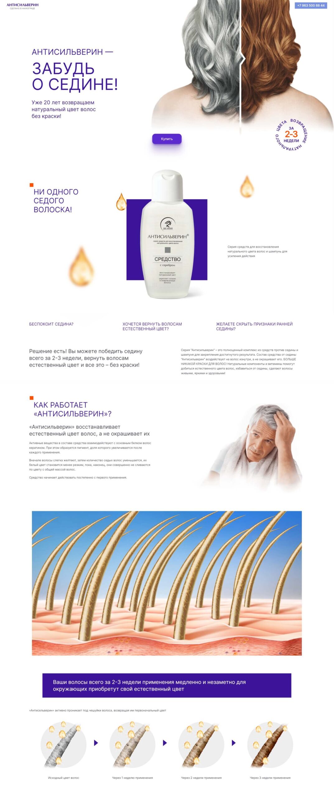 Создать с нуля промо-сайт с анимацией для продвижения средства для естественного окрашивания седых волос