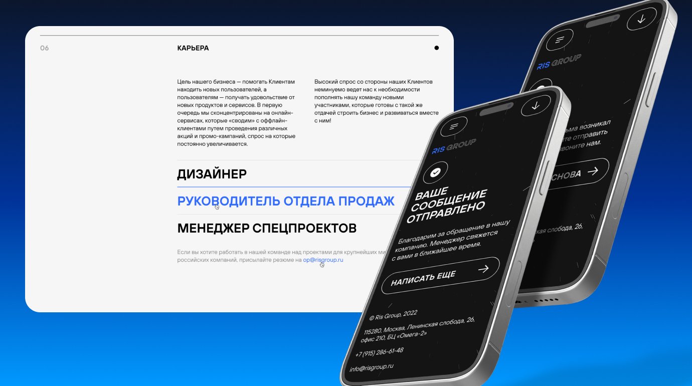 Нашей команде удалось в короткие сроки создать стильный и современный лендинг, отражающий экспертизу и философию RIS Group.