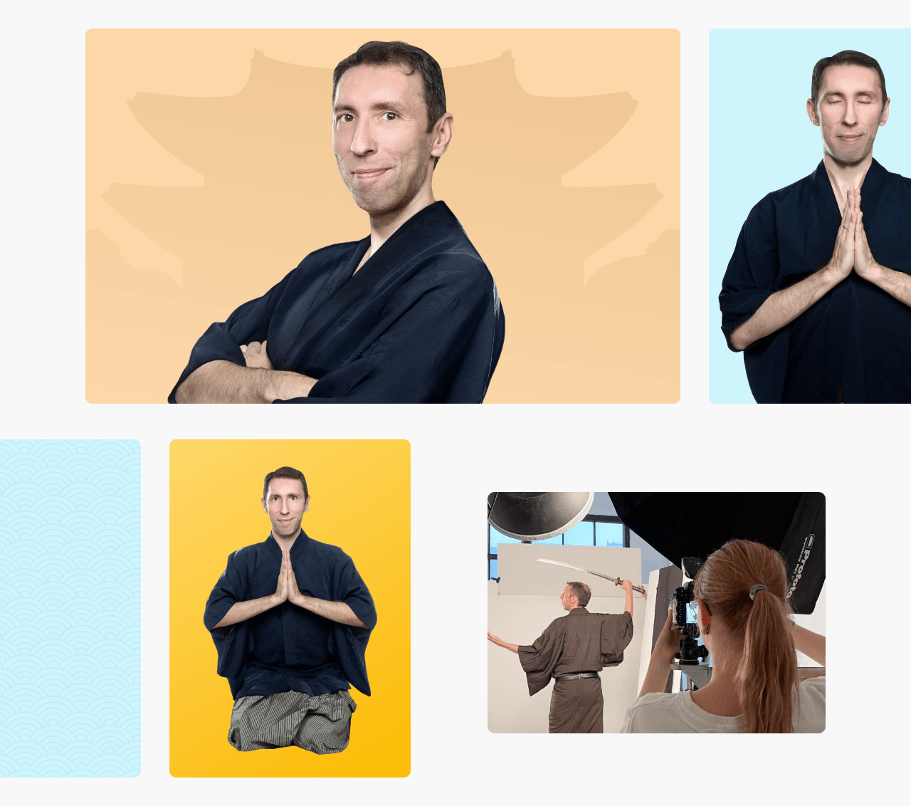 По концепции «Первого экрана» Ренат - настоящий самурай экспертизы по Японии, с катаной на фоне японского замка готов безжалостно разделаться со всеми вопросами клиентов о том, как попасть в страну восходящего солнца!