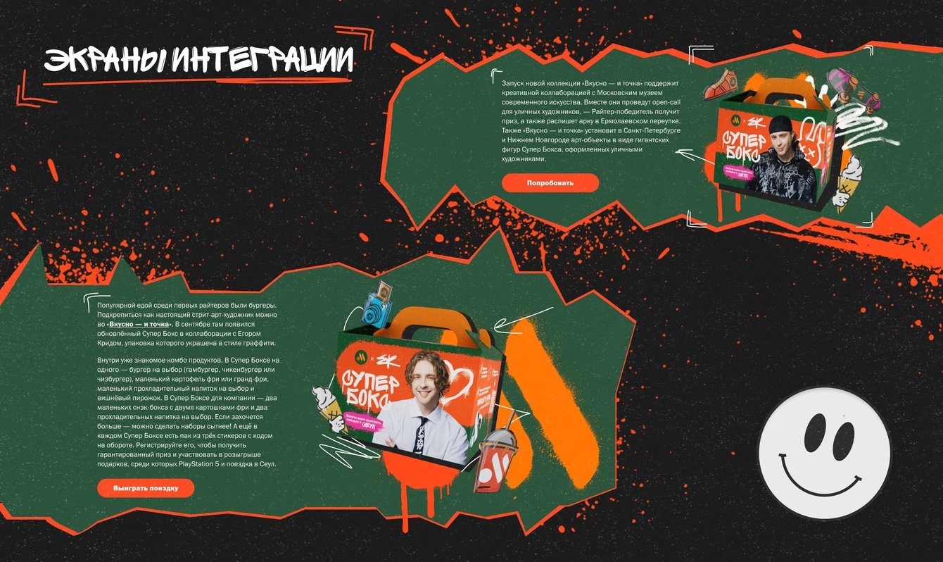 разработать интерактивный спецпроект к запуску новой коллекции «Вкусно — и точка» в креативной коллаборации с Московским музеем современного искусства и Егором Кридом.